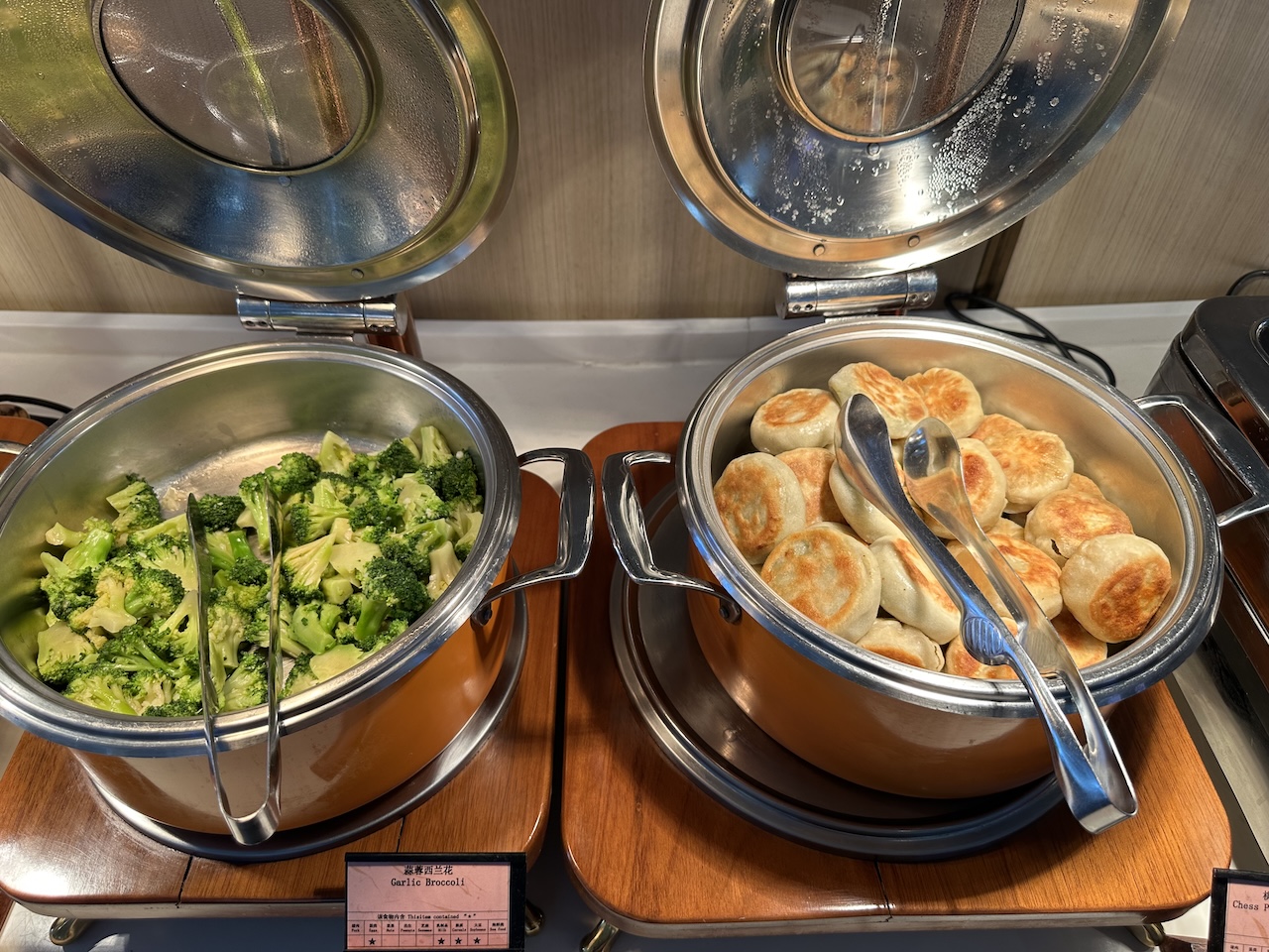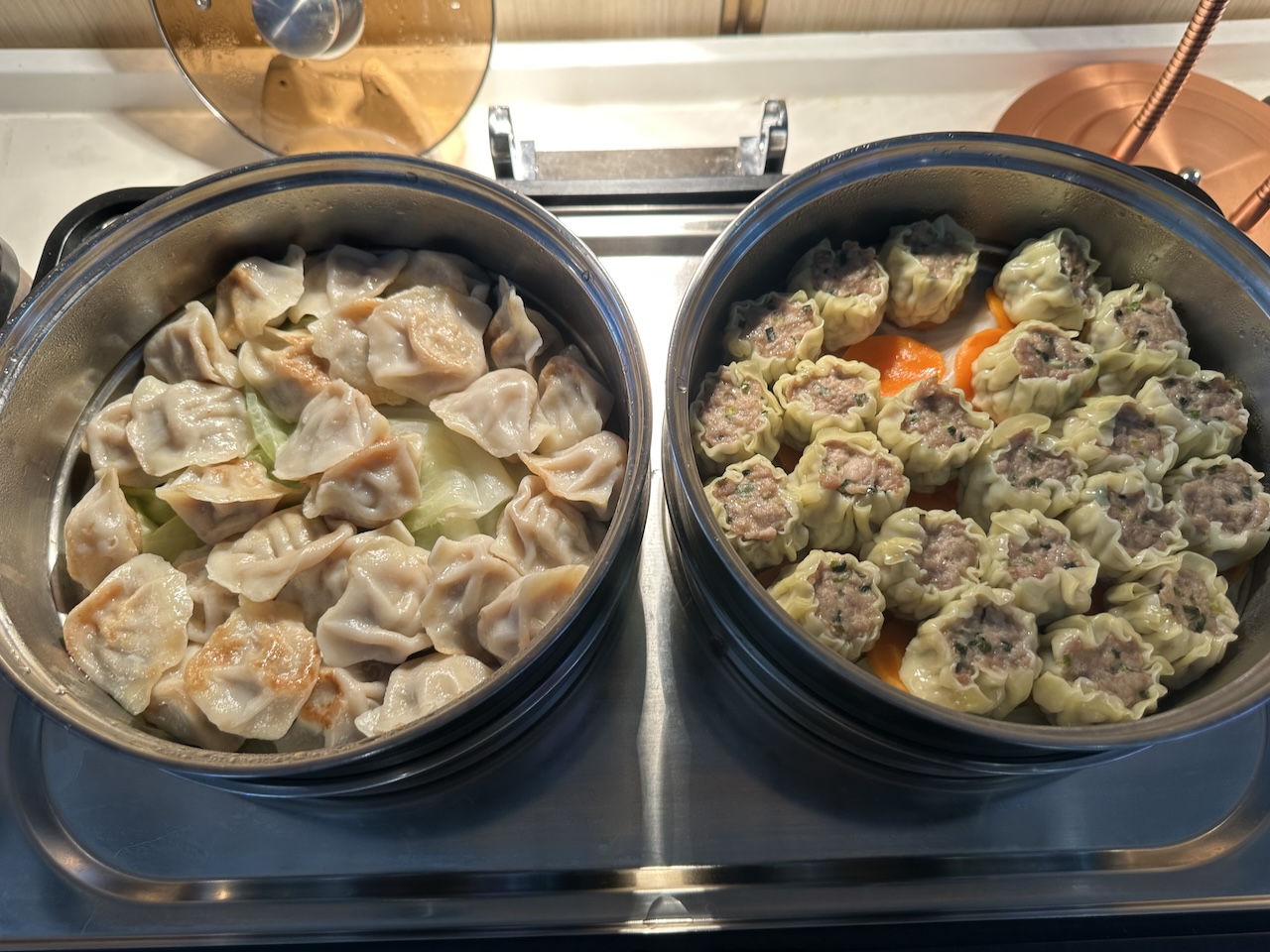 Am Buffet waren zahlreiche Vorrichtungen für warme Speisen, an einer Durchreiche konnte man Suppen und Bowls nach den eigenen Wünschen zubereiten lassen.