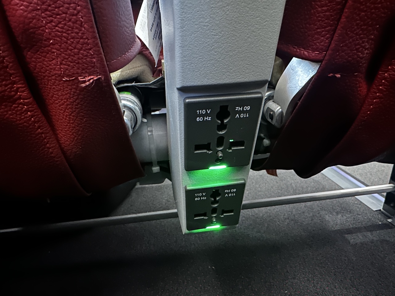 Der Sitzabstand ist dafür ganz akzeptabel, alle Plätze haben eine Sitztasche. Die Kabine war insgesamt modern und noch sehr neu.