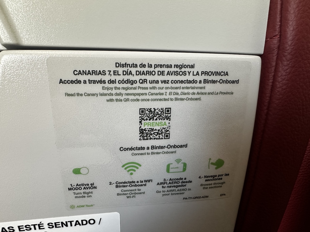 Binter Canarias Economy Class. Foto: Robert
