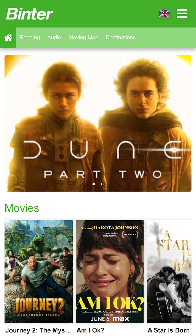 Während des Fluges kann man auch die aktuelle Position verfolgen und weitere Infos über die Airline abrufen. Binter bietet auch ein Bordmagazin an.