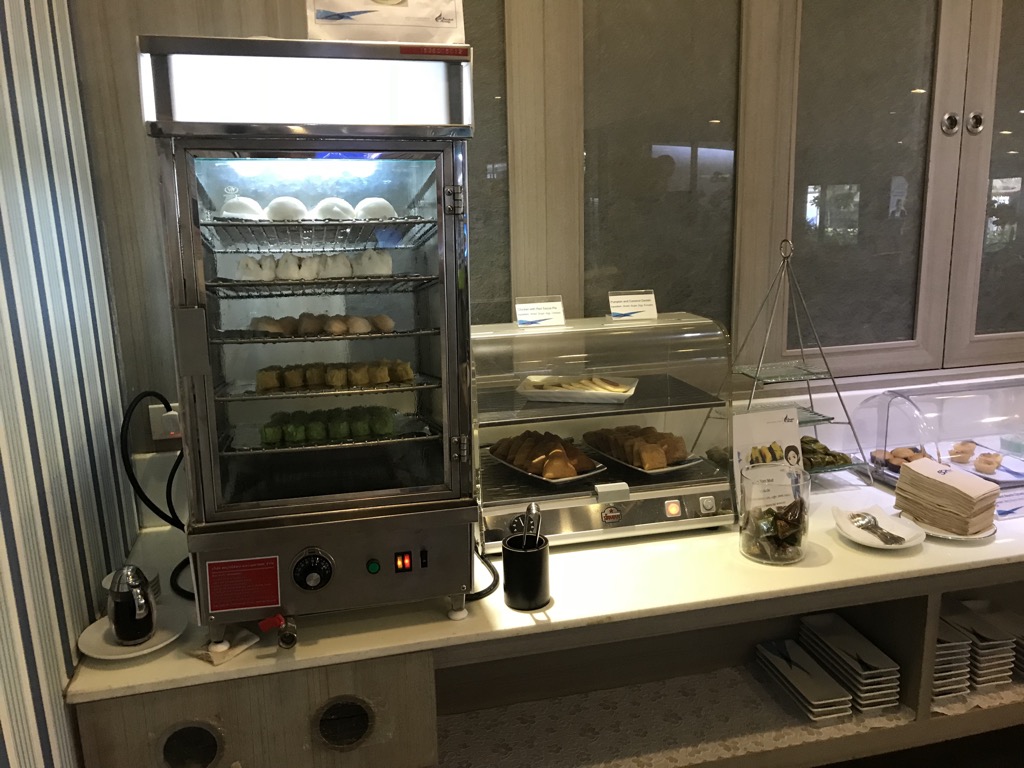 In der Lounge gab es ein kleines Buffet mit allerlei Snacks. Die Auswahl war hier für die Größe beachtlich. Ebenso wurde uns direkt nachdem wir Platz genommen hatten eine Speisekarte gebracht, aus der wir weitere Speisen und Getränke bestellen konnten. Da das Frühstück im Hotel uns nicht ansprach, hatten wir Hunger und haben uns etwas bestellt. Die Qualität und die Menge der Speisen und Getränkewar gut, wenn auch nicht überragend.