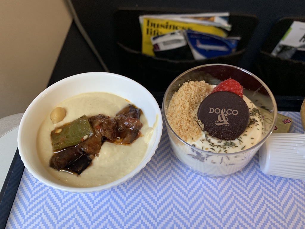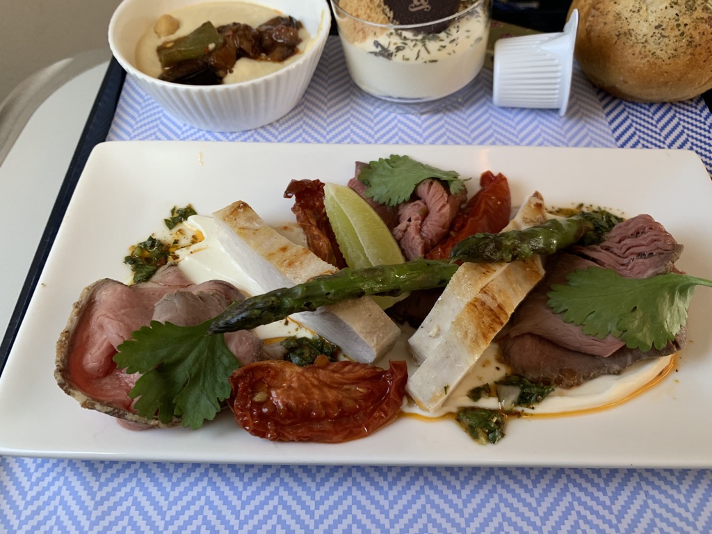 Zusammen mit dem Hummus als Vorspeise und dem Dessert fand ich diese Aufdeckung als absolut passend für den kurzen Flug nach Frankfurt.