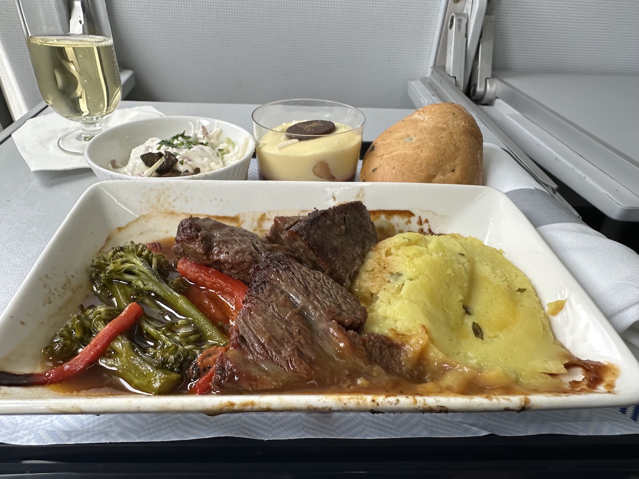 Heißes Essen und Champagner auf einem 90-Minuten-Flug ist heute schon ungewöhnlich und mehr als das was die Mitbewerber noch bieten. Zusammen mit dem Charme der Flugbegleiterin und ein paar lockeren Sprüchen aus dem Cockpit war es erneut ein gelungenes Reiseerlebnis.