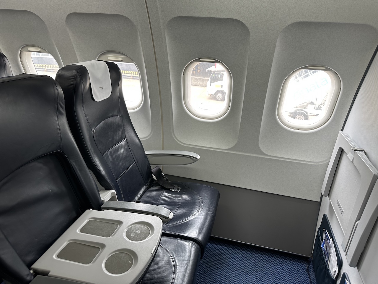 Auf dem Weg zum Gate ging es schnell durch die Passkontrolle, das Boarding startete überpünktlich und richtete sich zu Beginn an Gäste der Business Class, Familien mit Kindern und „Reisende, die mehr Zeit zum Einsteigen benötigen“. Heute waren nur 2 Passagiere in der Business Class, die Kabinenchefin begrüßte einen anderen Herren und mich mit dem Angebot den Sitzplatz nach eigenem Gusto zu wechseln.