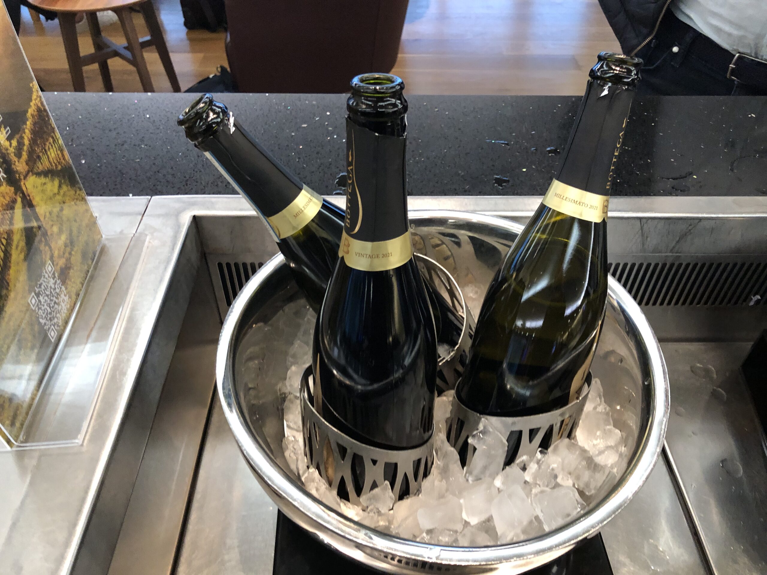 Nach Champagner muss man in der Club Lounge fragen. Dann kriegt man den. Schon eine ganze Weile so.