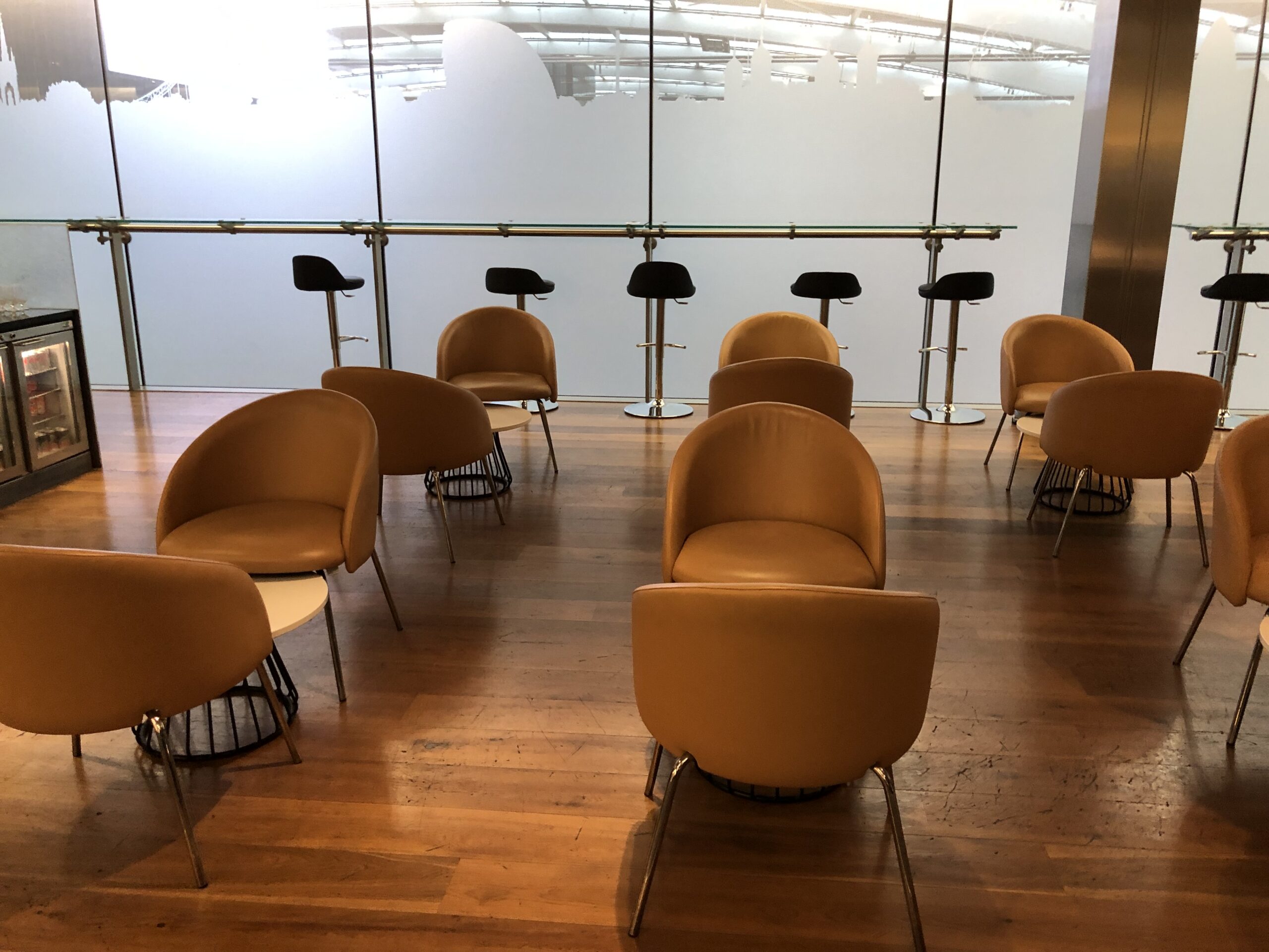 Beim Betreten bestätigte sich diese elektronische Anzeige der Auslastung, im Eingangsbereich standen kaum Gäste und in der Lounge waren noch ausreichend Sitzplätze frei. Bei der Zutrittskontrolle wird die Bordkarte gescannt, berechtigt sind Business Gäste der oneworld, neben British benutzen auch Iberia und American Airlines das T5. Statuskunden ab dem oneworld Sapphire Status darf man ebenfalls in die Lounge und kann einen Gast mitnehmen.