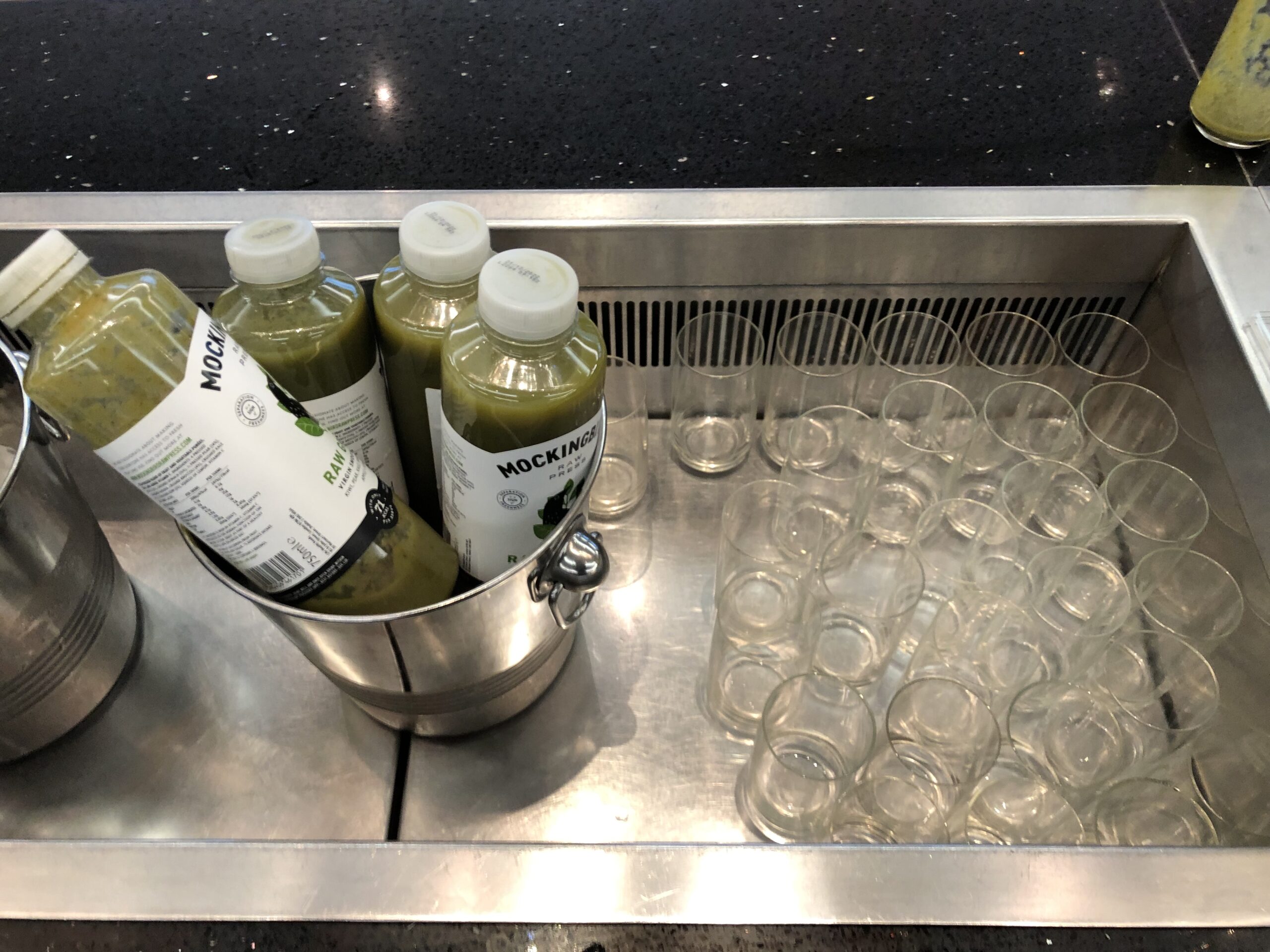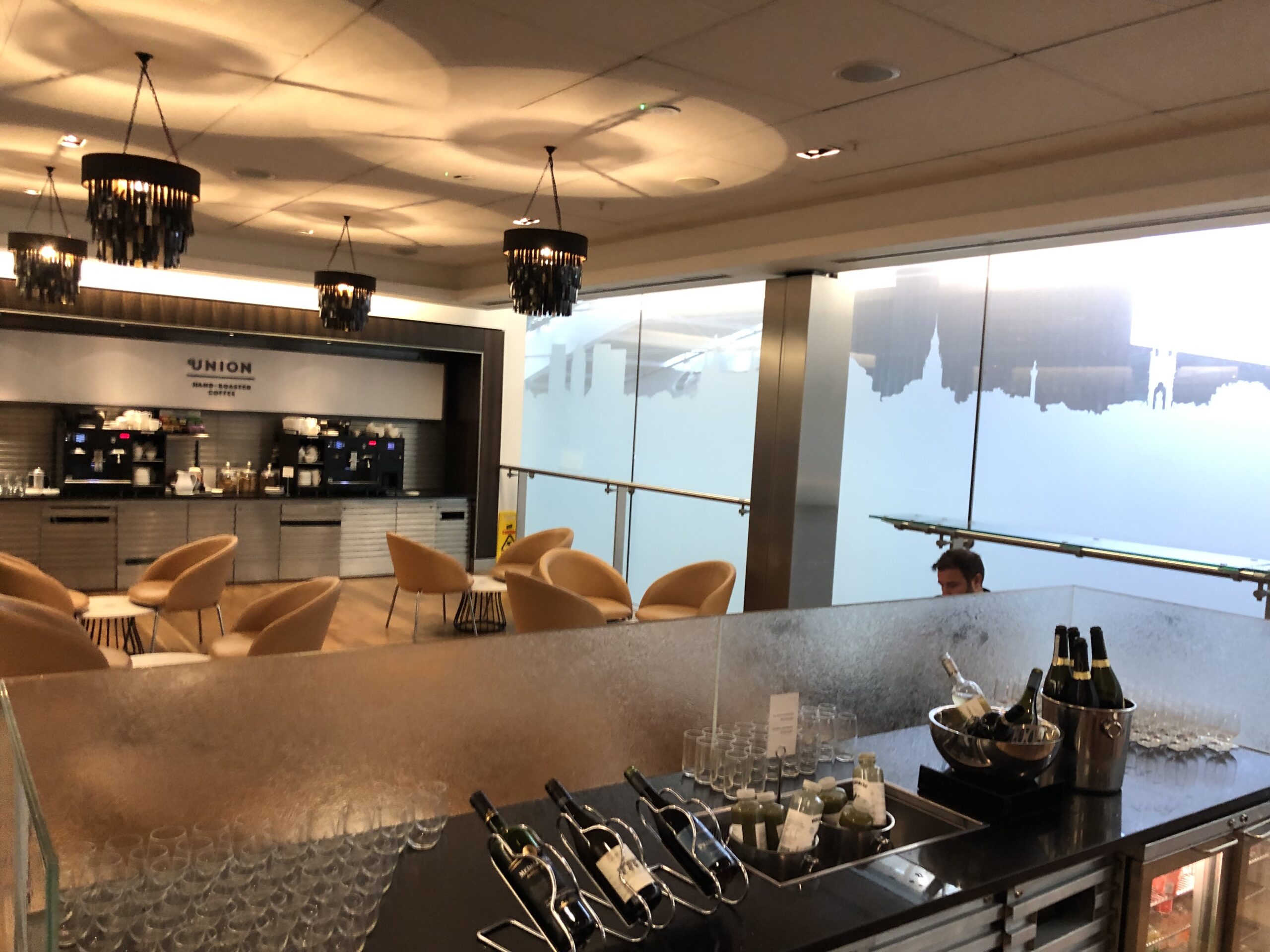 Schade dass kein Champagner mehr angeboten wird, beim Getränke- und Essensangebot darf man sich sonst aber nicht wirklich beschweren. Die South Lounge ist groß und bietet vielen berechtigten Passagieren Platz, doch wie überall auch wird es ab einer gewissen Auslastung unschön. Das Personal hat es aber dennoch geschafft das volle Angebot bereit zu stellen und die benutzten Geschirrmassen zu beseitigen.