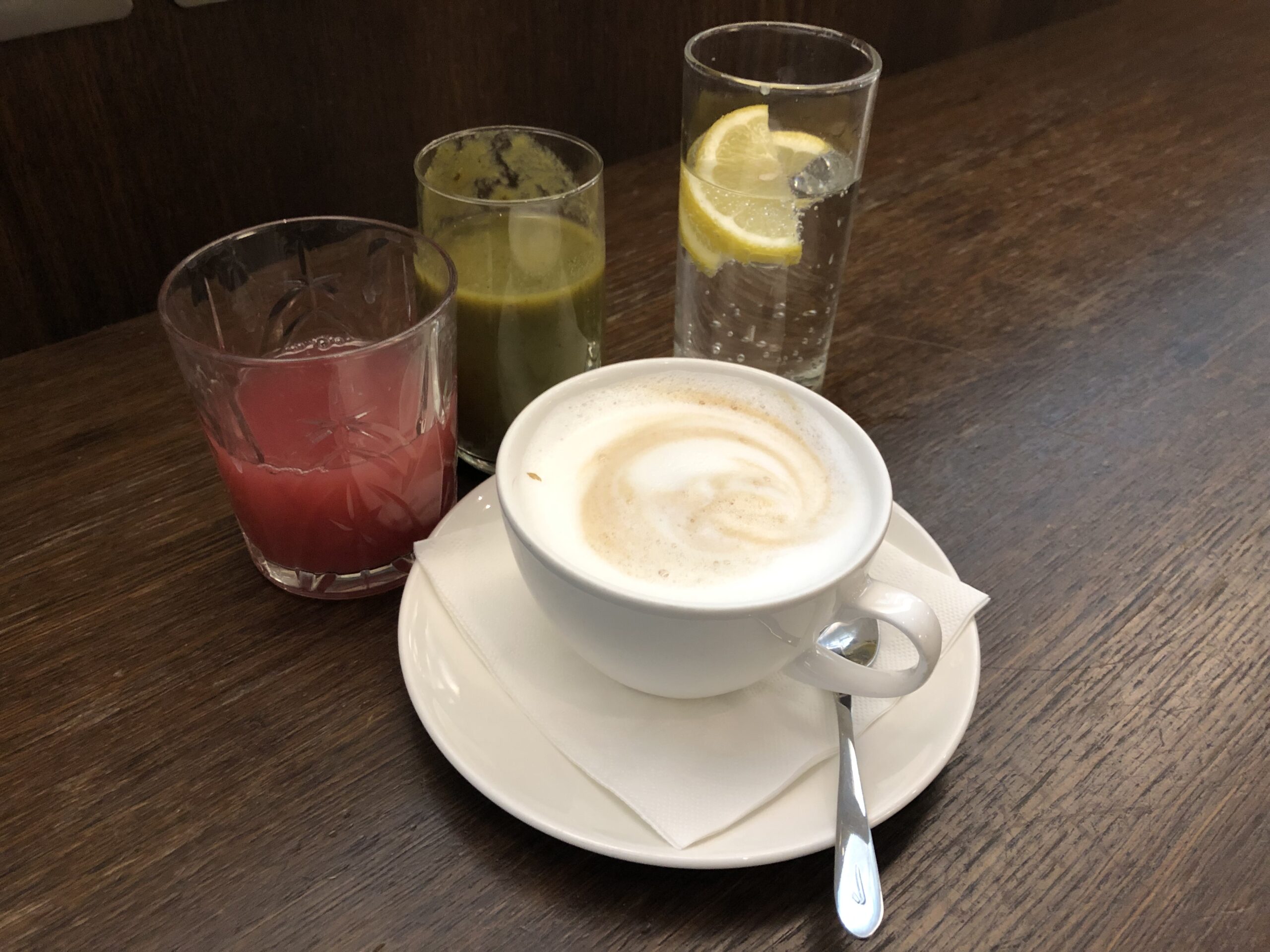 Darüberhinaus stehen zahlreiche Weine, Alkoholika, Softdrinks und Heißgetränke bereit. Am Morgen standen auch Smoothies am Buffet.