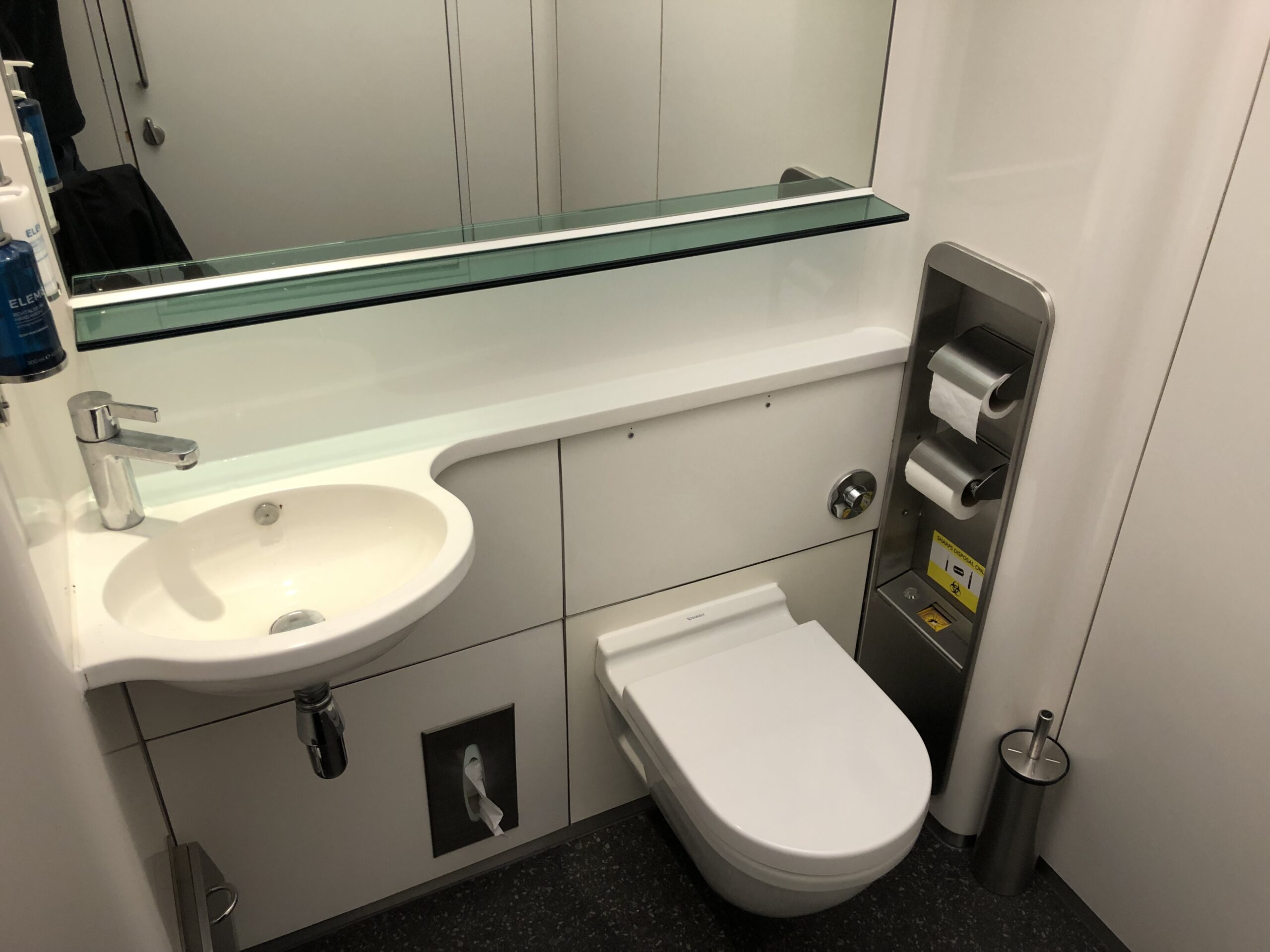 Die Toiletten sind in einzelne abgetrennte Räume aufgeteilt was zu Wartezeiten führen kann. Dafür hat man dort Platz und viel Ruhe.