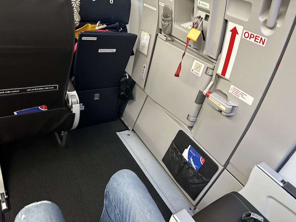 An den beiden Notausgangspaaren in der Kabine hat man überdurchschnittlich viel Beinfreiheit, unter Umständen hat man aber keine gute Aussicht aus den Fenstern.