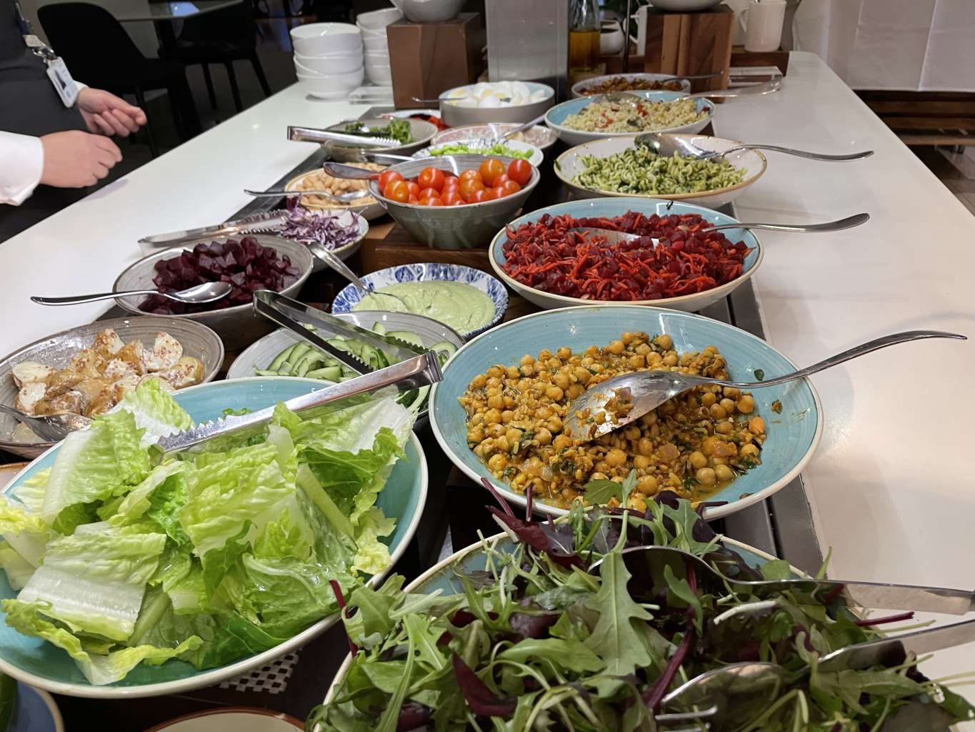 Im Vergleich zur Cathay Pacific Lounge war das Personal deutlich weniger präsent. Auch die Bar war nicht besetzt. Dennoch war die Lounge top sauber und das Büffet in einwandfreiem Zustand.