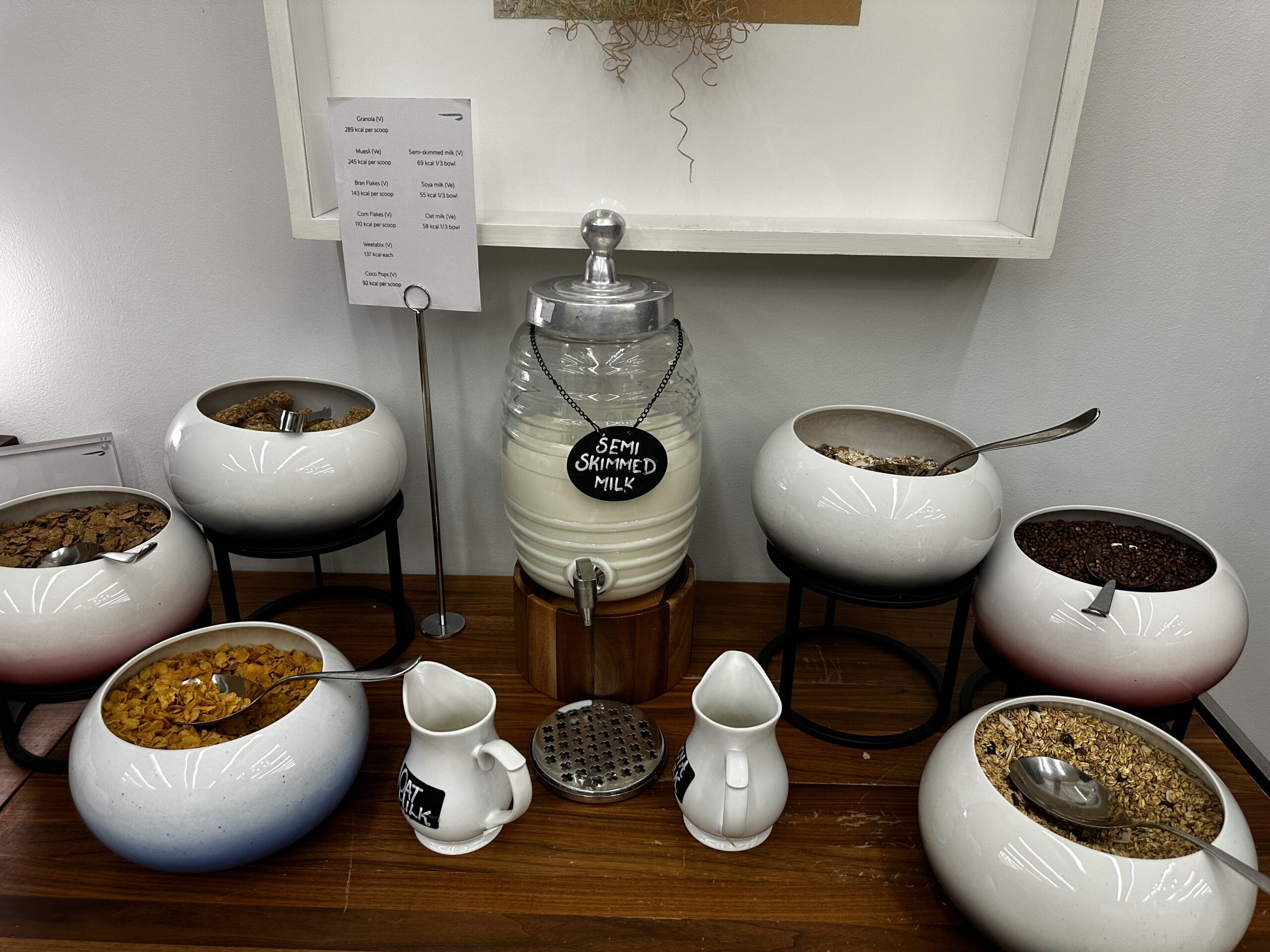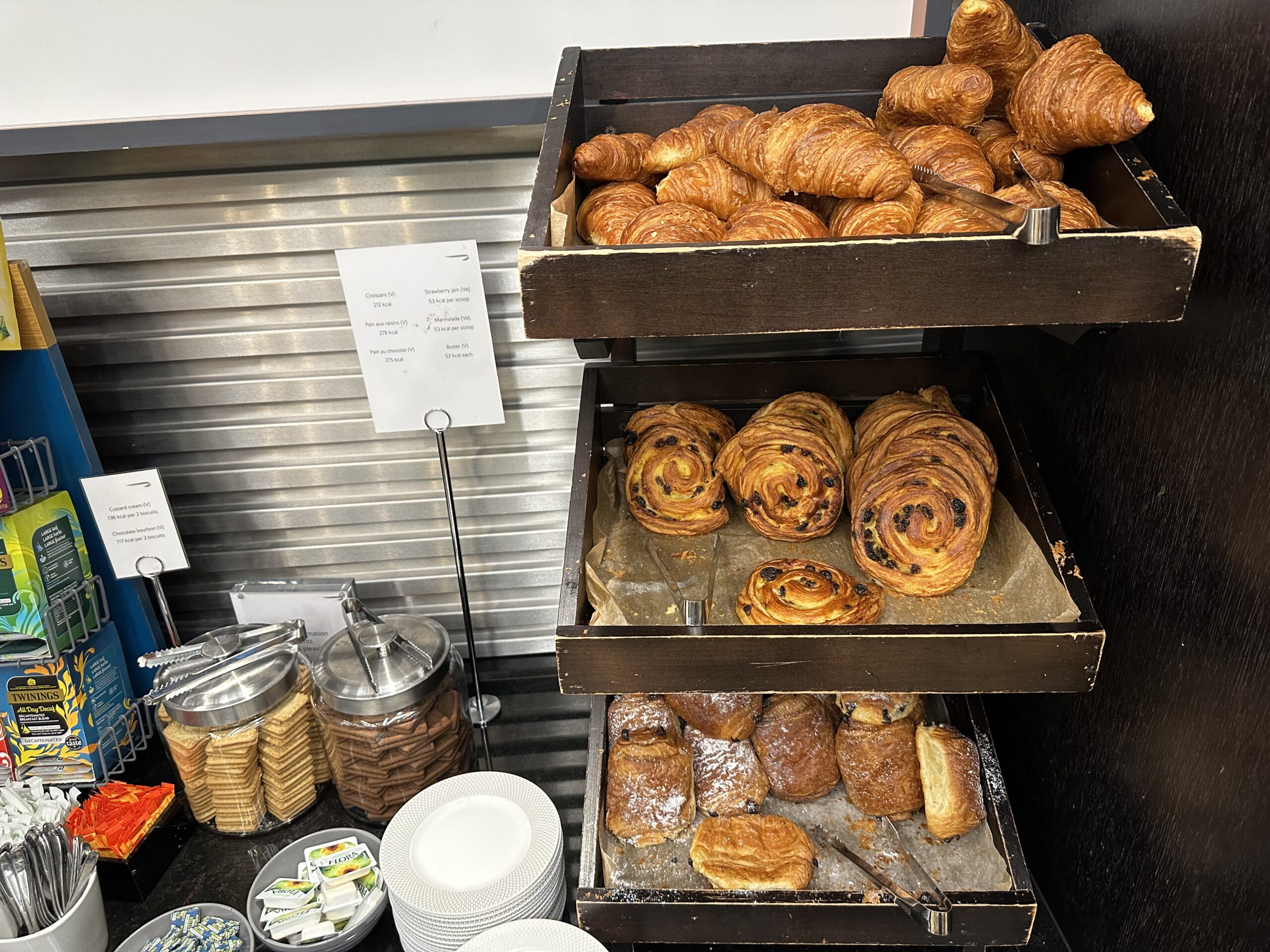 Ich war zur Frühstückszeit in der Lounge. Im Grunde genommen kann man sich alle gewünschten Items selbst holen und zu einem Platz bringen. Ich bin dennoch zur Bar und habe mir ein Glas Champagner bestellt, dazu gab es gleich etwas Smalltalk mit der Mitarbeiterin und einem anderen Gast.