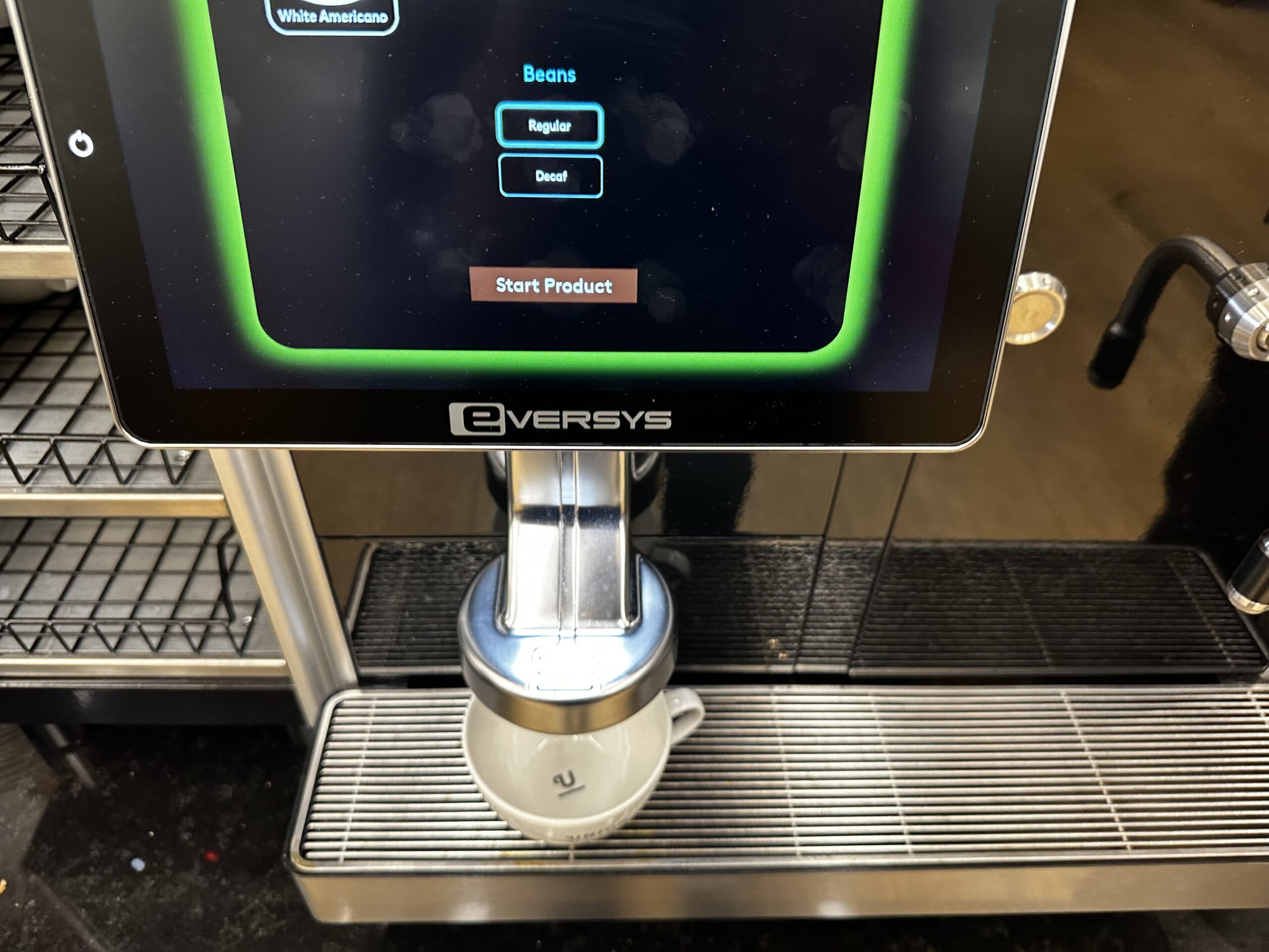 Heißgetränke darf man selbst am Automaten holen, aber auch an der Bar bestellen.