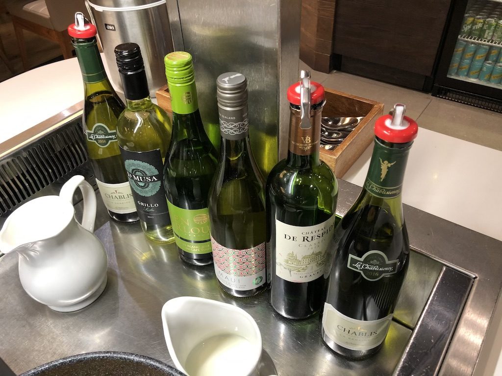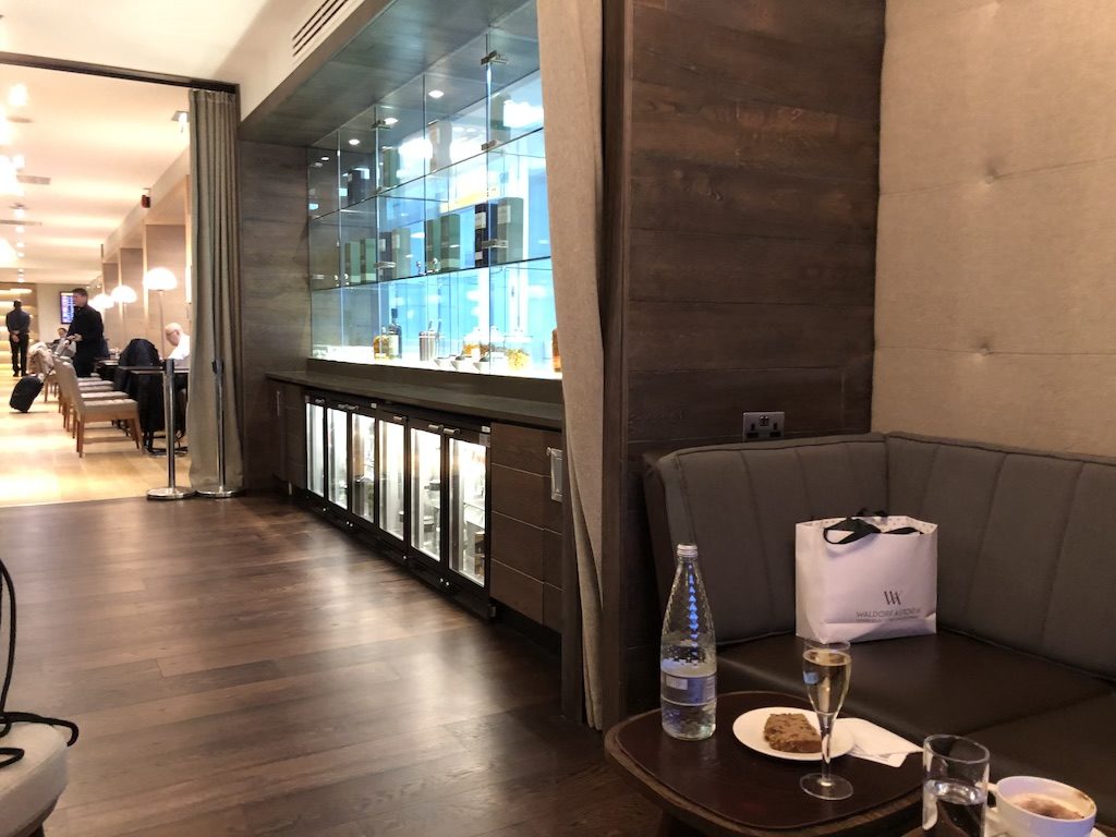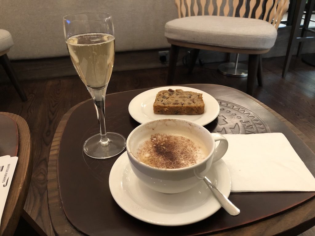 Wie an Bord von British Airways wird auch in der Lounge Champagner ausgeschenkt. Dieser steht allerdings nicht am Buffet und wird auf Wunsch vom Personal aus der Küche serviert.