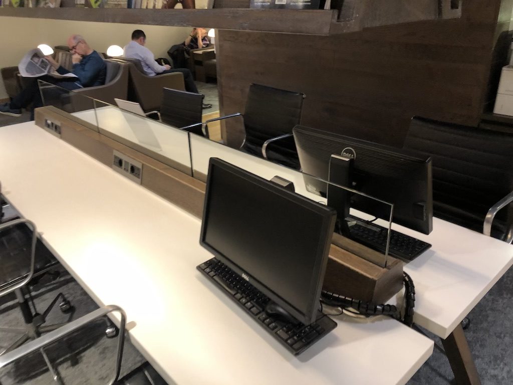 Das Mobiliar wirkt relativ neu, ich vermute die Lounge wurde vor nicht allzu langer Zeit renoviert. Man findet diverse Möglichkeiten zum Essen oder auch in Ruhe zu Arbeiten. Dafür steht ein kleiner Business-Bereich mit Drehstühlen und Computern zur Verfügung. Zudem gibt es auch einige ruhigere Ecken um sich zurückzuziehen.