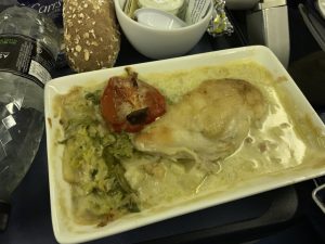 Kurze Zeit später wurde auch schon das Abendessen, ohne weitere Getränkerunde serviert. Lediglich Wasser, Bier und Wein hatte man auf dem Wagen, allerdings hat man mir auf meine Bitte nach einer weiteren Cola ohne Murren wenig später eine gebracht.