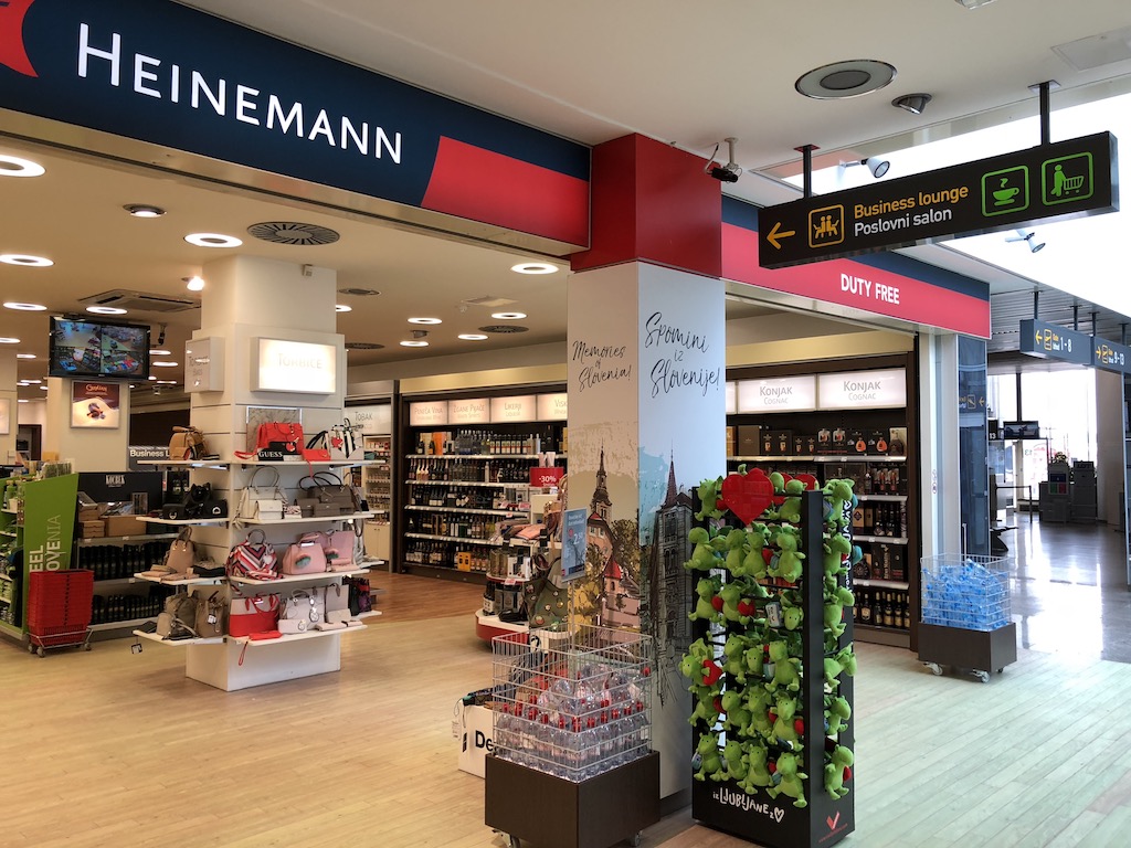 Der Flughafen Ljubljana in Slowenien ist zwar der größte des Landes, dennoch aber klein und übersichtlich. Vieles im Flughafen erinnert an Frankfurt oder München, da dieser Flughafen von Fraport betrieben wird. Er dient als Hub für Adria Airways, welche ausschließlich Kurz- und Mittelstrecken bedient und zahlreiche andere europäische Airlines. Folgt man nach der Sicherheitskontrolle der Beschilderung zur Business Lounge, gelangt man durch den Heinemann Duty-free zur Lounge welche unter anderem von Adria Airways genutzt wird.