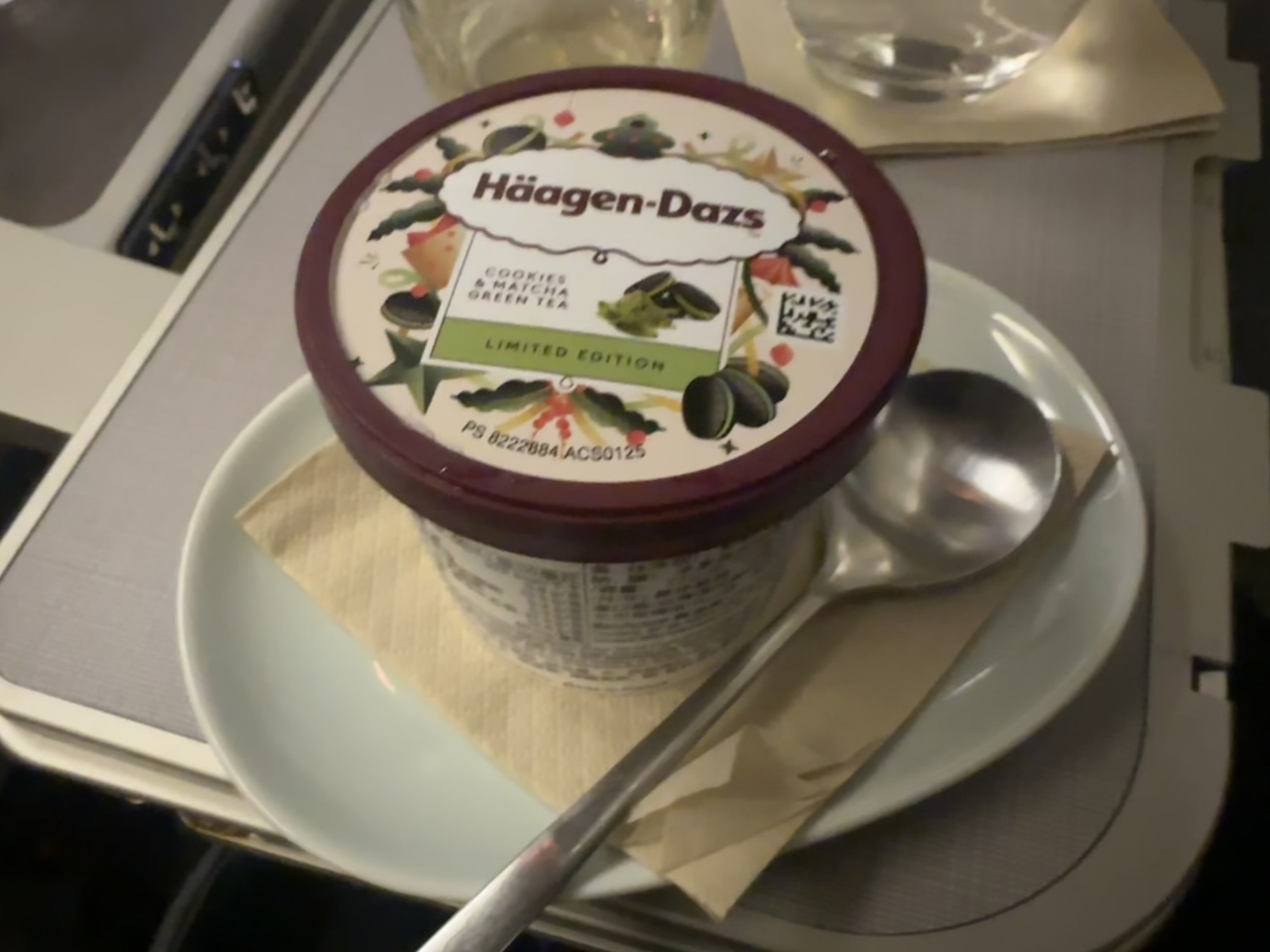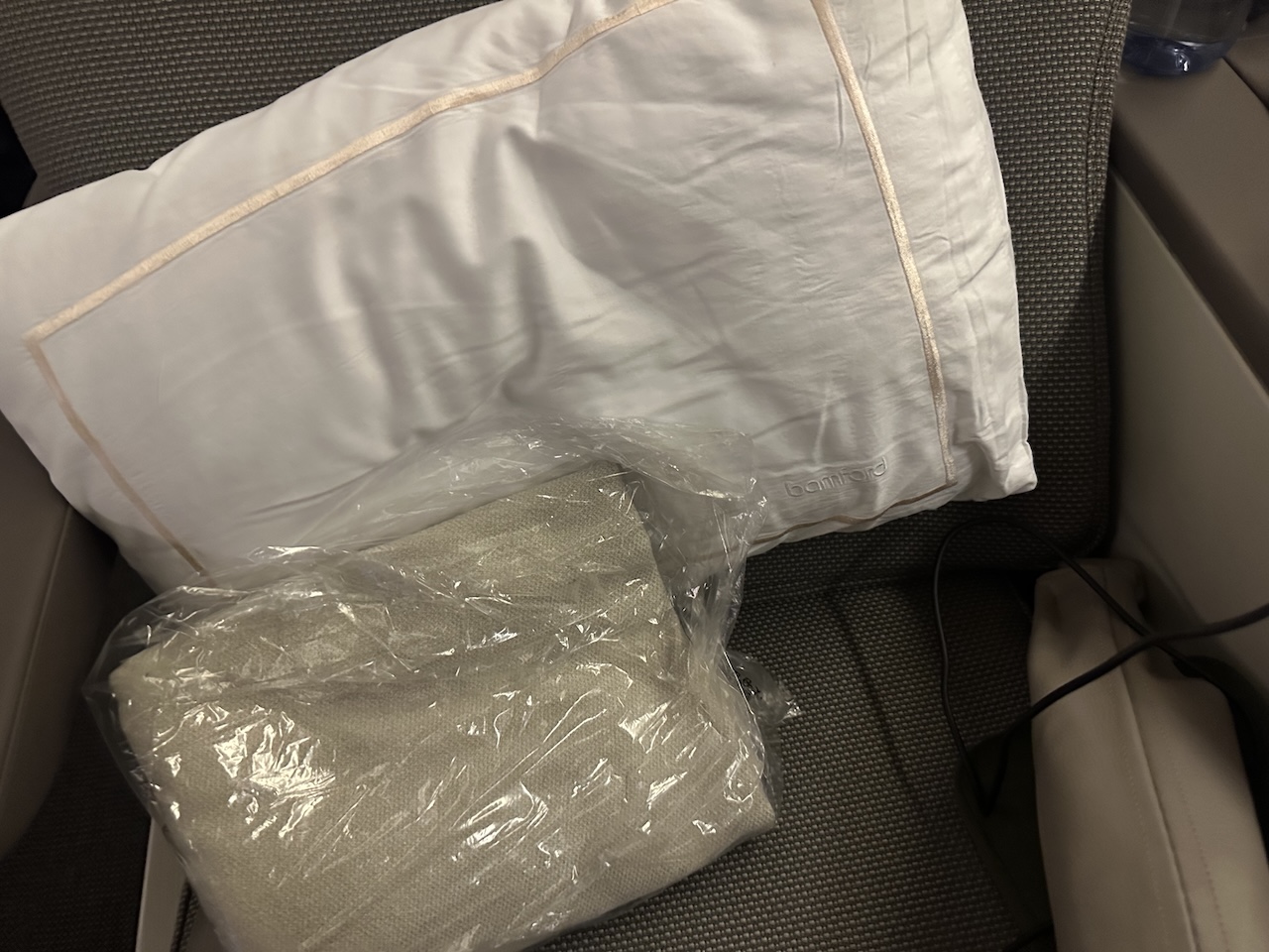 Ich hatte einen Gangplatz in einem 2er-Block am Fenster, der Sitz 12C war in der ersten Reihe. Am Platz lagen bereits Decke & Kissen, andere Items wurden später ausgehändigt.