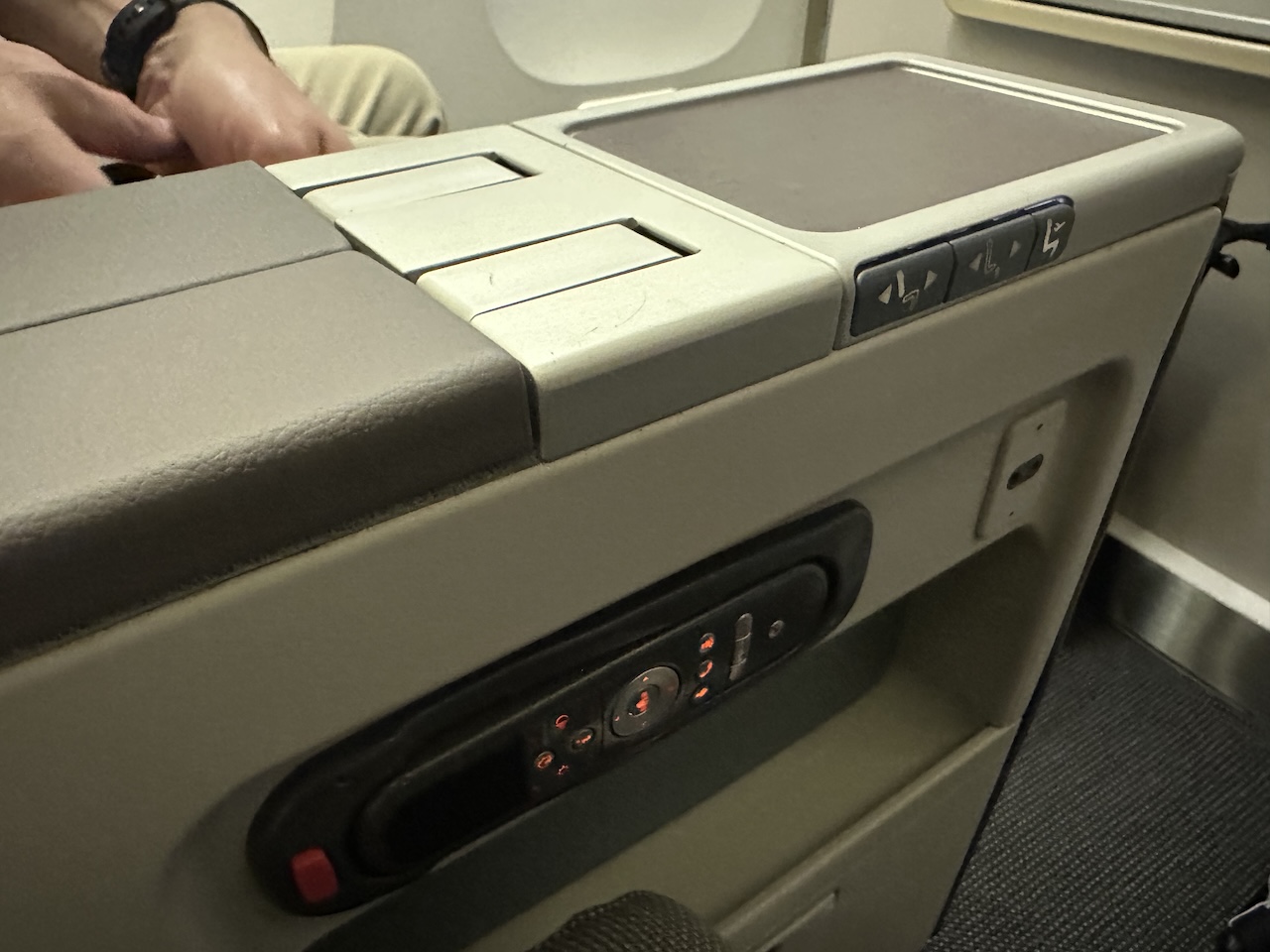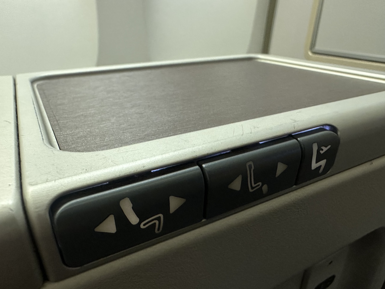 Man merkt, dass die Europäer an regionale Business Class Produkte sehr geringe Ansprüche haben. In Asien sind diese Sitze, die eher einem Recliner der Premium Eco entsprechen, das unterste Minimum der Business Class. Cathay Pacific hat sonst auf regionalen Routen durchaus echte Business Class Sitze mit Flatbeds oder zumindest angled flat.