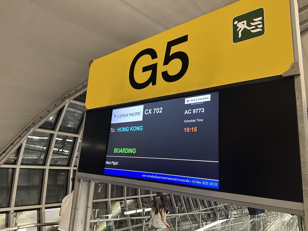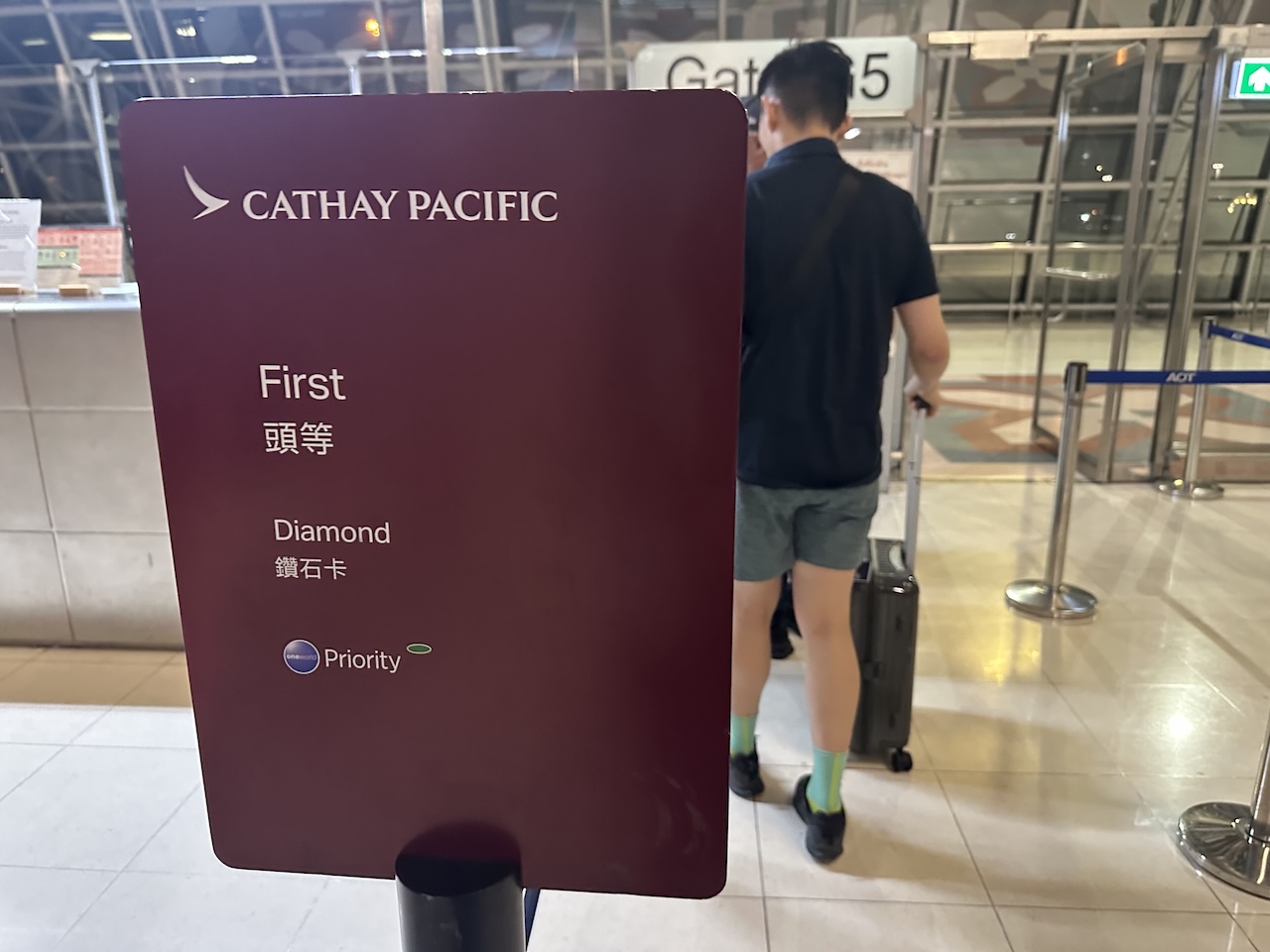 Ich wollte schon 4-5 Stunden vor Abflug am Airport sein um die Lounges zu nutzen. Gerade an Außenstationen geht so etwas nicht, da die Check-in Schalter oft nur 2-3 Stunden vor Abflug öffnen. Cathay Pacific fliegt ab Bangkok aber am Nachmittag alle 1-2 Stunden ab, daher hat der Carrier mehrere Check-in Schalter, die durchgehend geöffnet sind.
