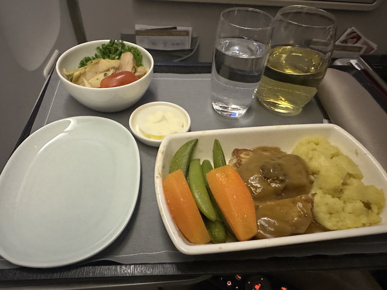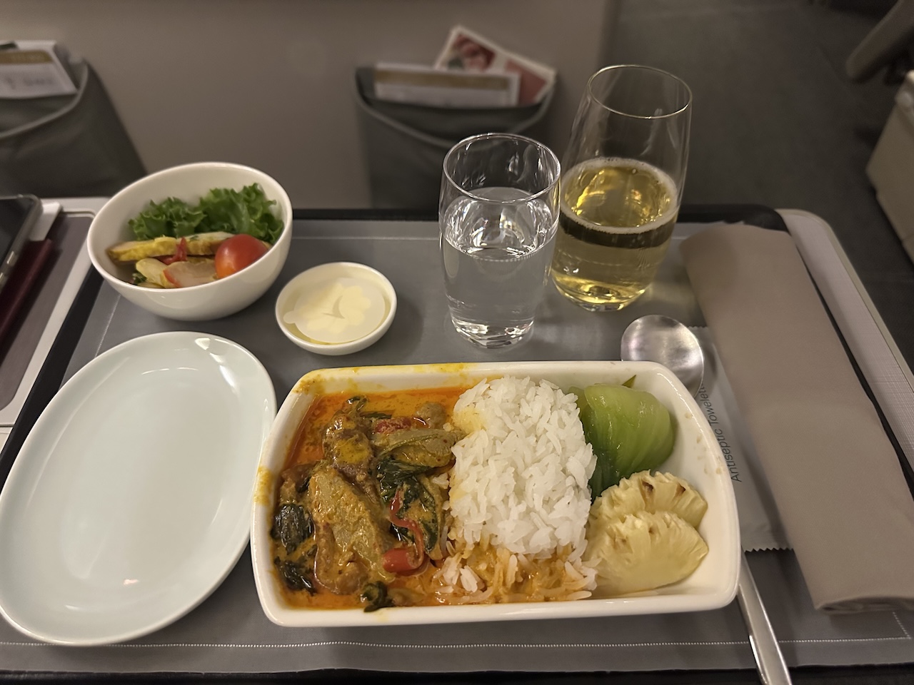 Auf diesen Flugabschnitt meiner Reise habe ich mich besonders gefreut, da ich noch nie bei Cathay Pacific in der Business Class geflogen bin. Es war zwar ein kürzerer Flug, diesen habe ich aber positiv in Erinnerung. Die Kabine wirkte zwar schon etwas altbacken, die Sitze sind aber bequem und der Service war für die zwei Stunden umfangreich.