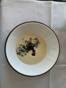 Die Suppe wurde mir am Platz auf den Teller gegossen und den Grünkohl bekam ich separat gereicht. Das machte vom Service und von der Darreichung schon schwer was her, brachte den Geschmack aber nicht voran.