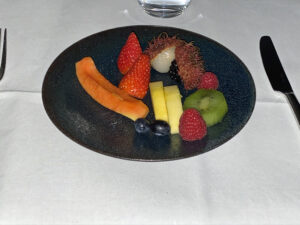 Das eigentliche Essen umfasste dann fünf Gänge. Die Seiten des Menüs habe ich abfotografiert. Geschmacklich waren die chinesischen Optionen deutlich geschmacksintensiver als die deutsch/europäischen.