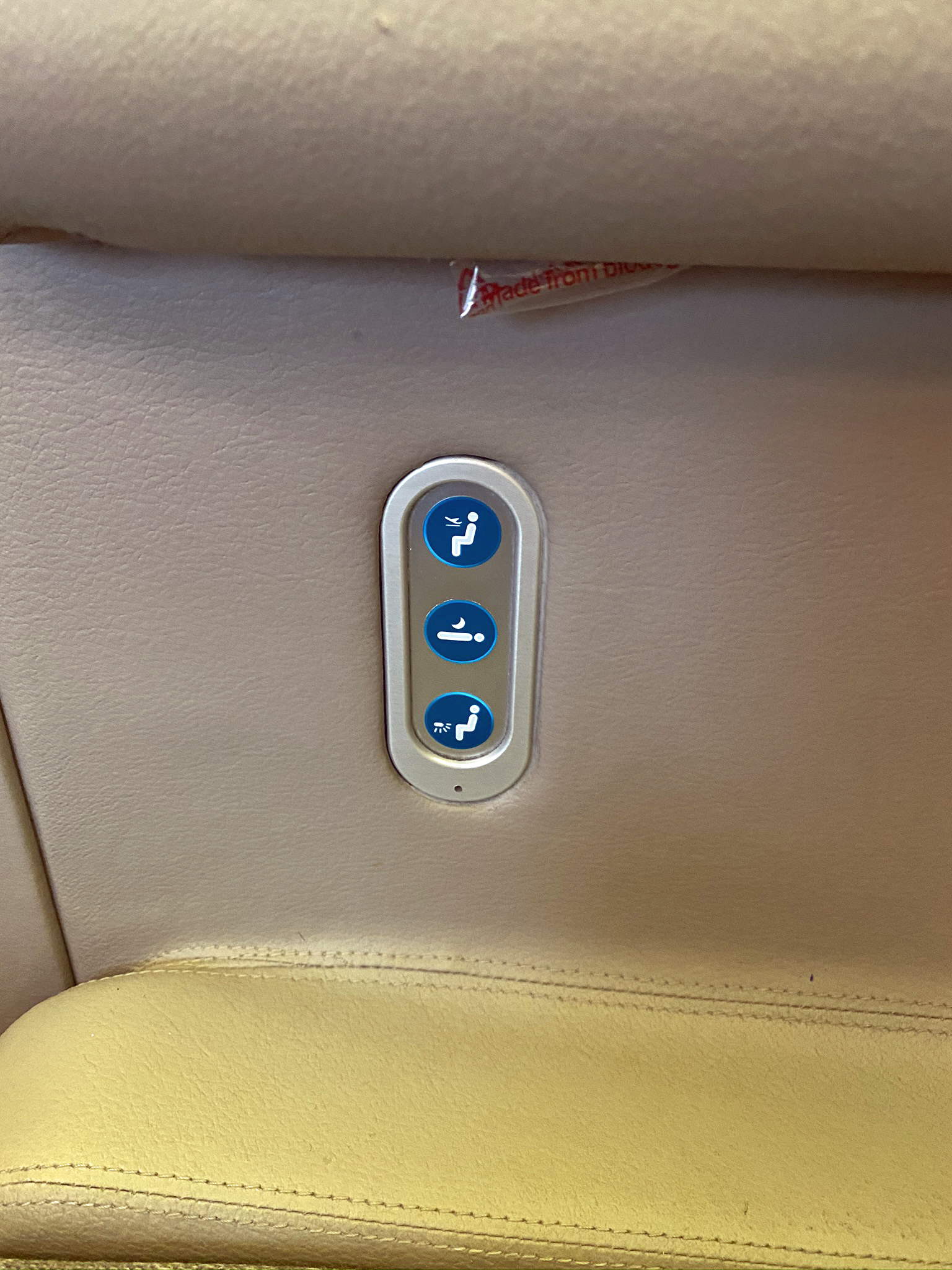 Die Jacke war ich zu dem Zeitpunkt schon los – sie wurde mir von einer Flugbegleiterin abgenommen, auf einen Bügel gehängt und im Schrank an meinem Platz verstaut. Meine Mitreisenden in der First Class waren zum Glück noch nicht im Flugzeug. Am Ende waren wir übrigens zu dritt. Toll, ein Sitz und ein Bett für jeden. Allerdings war ich der einzige, der die sehr komfortable Option genutzt hat.