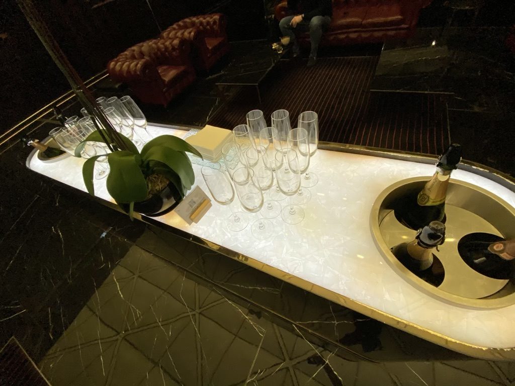 Direkt hinter dem Empfangstresen, an dem freundlich unsere Bordkarten gescannt wurden, erwartete uns das erste Highlight, die Champagnerbar. Hier kann man direkt nach dem Check-In in die Lounge ein kühles Glas Champagner genießen.