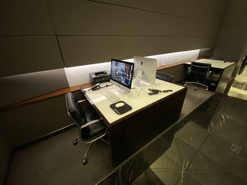 Hinter der Champagnerbar befinden sich seitlich einige Workstations, an denen man an Apple PCs arbeiten kann. Zum Telefonieren eignet sich dieser Platz wohl am besten, wenn man sich durch die Umgebungsgeräusche nicht stören lässt.