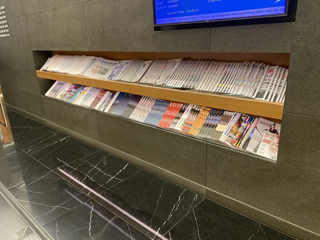 Ein Hingucker war definitiv auch die Wand mit Magazinen und Zeitungen. Hier gab es eine große Auswahl nationaler und internationaler Presse, an der man sich bedienen konnte.