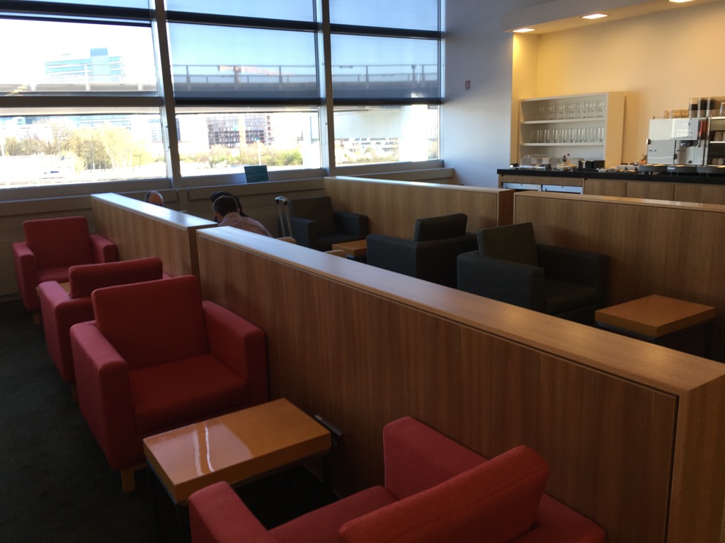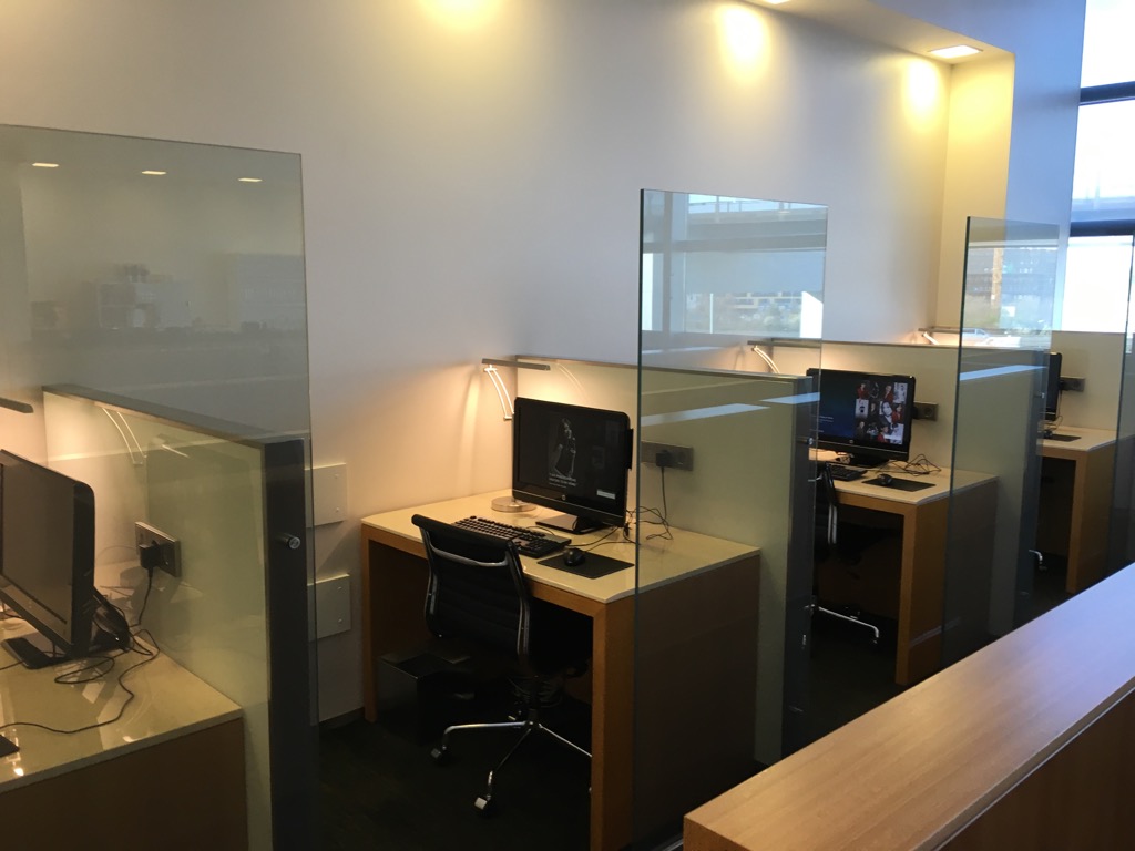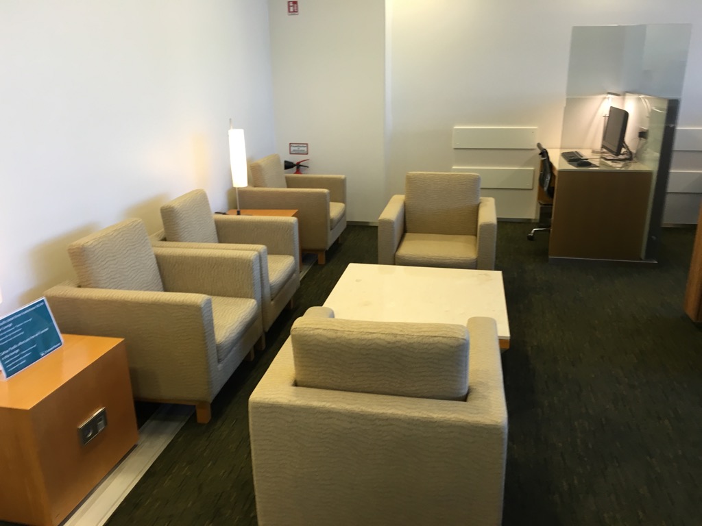 Die Cathay Pacific Lounge Frankfurt besteht im Grunde aus zwei Räumen. Im vorderen Raum befinden sich neben einigen Sesseln, auch Arbeitsplätze mit Steckdosen. Die gesamte Lounge verfügt natürlich auch über kostenfreies WLAN.