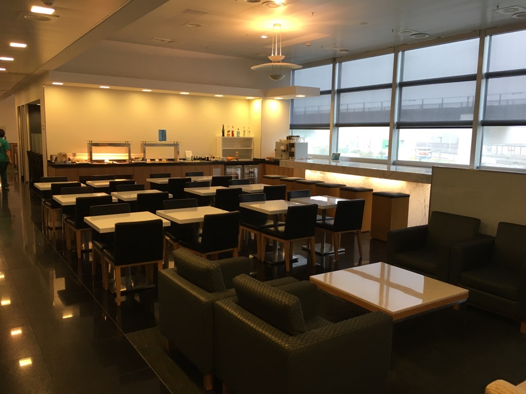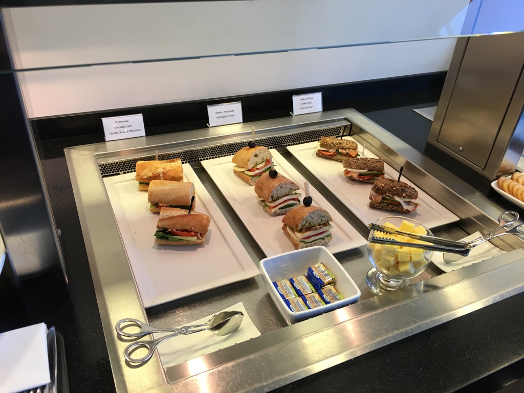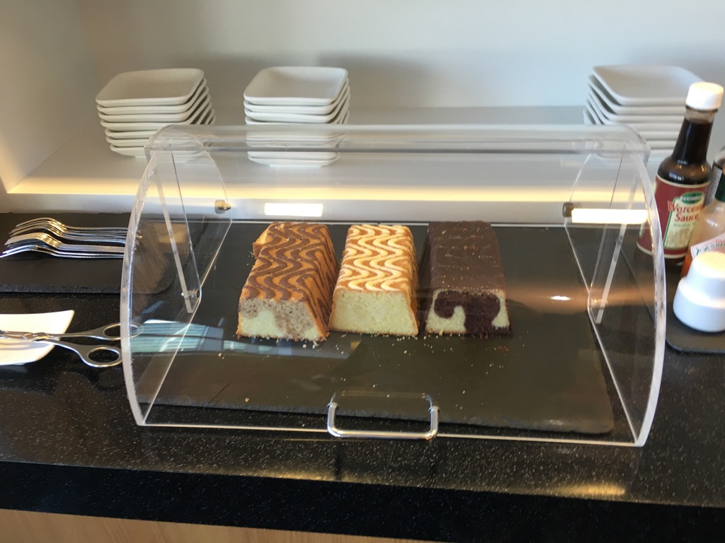 An zwei Buffets werden in der Lounge Essen und Getränke zur Selbstbedienung angeboten. Ich habe die Lounge zur Frühstückszeit besucht. Ob das Angebot zum Mittag hin noch einmal geändert wird, kann ich leider nicht sagen, allerdings vermute ich es.