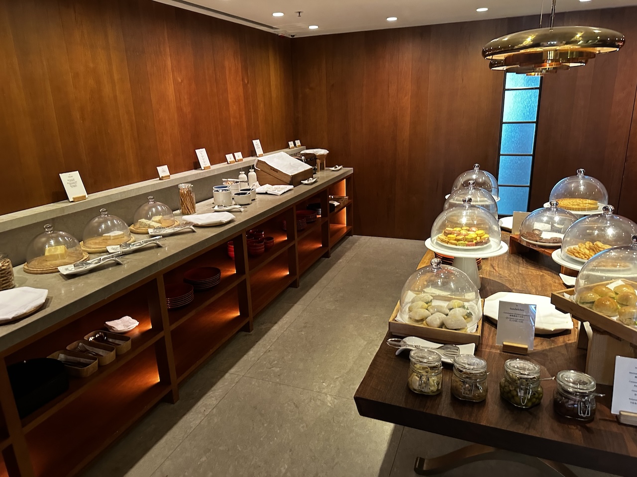 Cathay Pacific „The Pier“ First Class Lounge in Hongkong, Buffet. Foto: Robert
