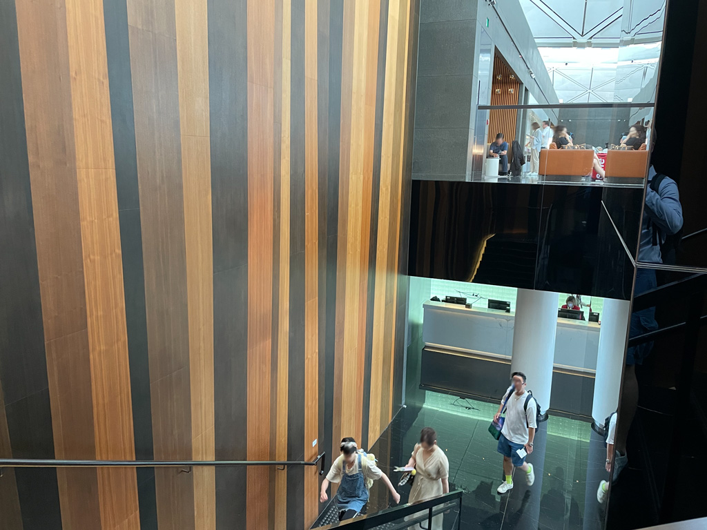 Die eigentliche Lounge befindet sich wieder ein Stockwerk höher als der Eingangsbereich. Dementsprechend geht es zunächst eine Treppe (oder im Aufzug) hoch.
