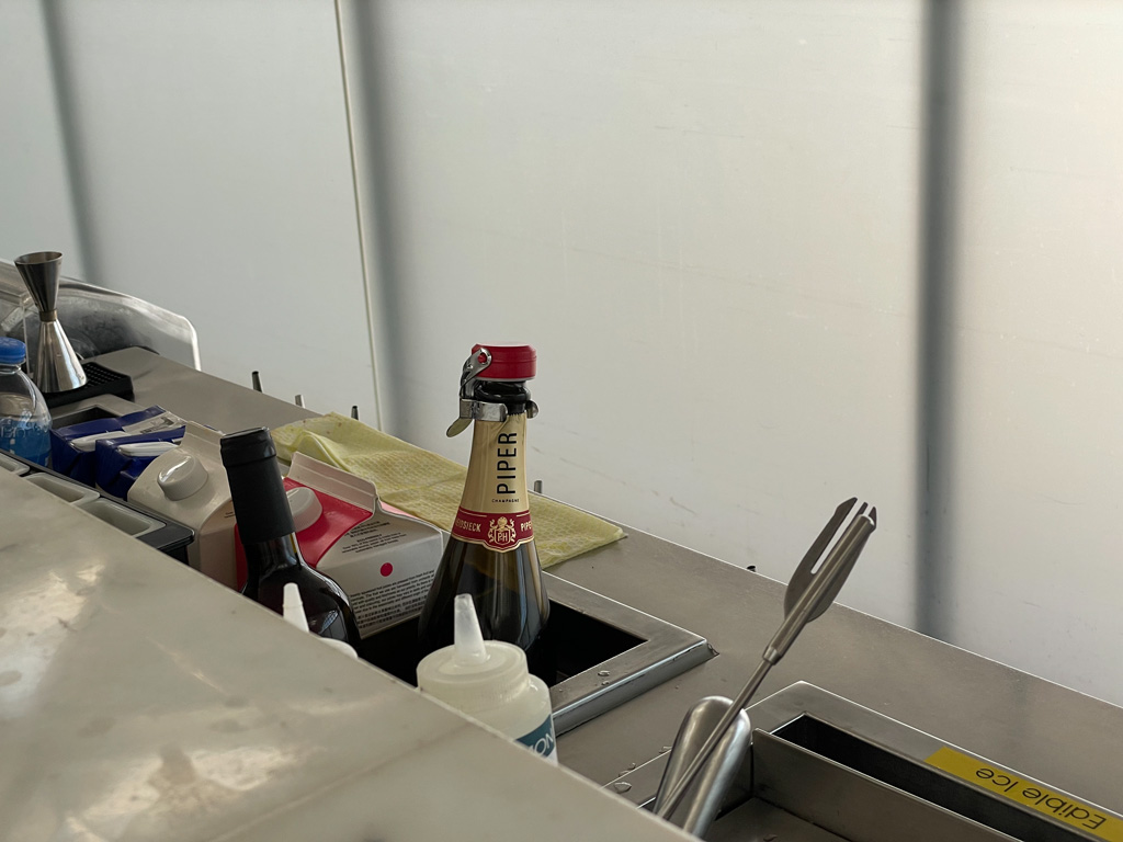 Getränke (außer Säfte) standen im Kühlschrank in Dösen bereit. Wer den Kreislauf mit Champagner auf Trab bringen möchte, kann das mit einem Schluck Piper-Heidsieck tun.