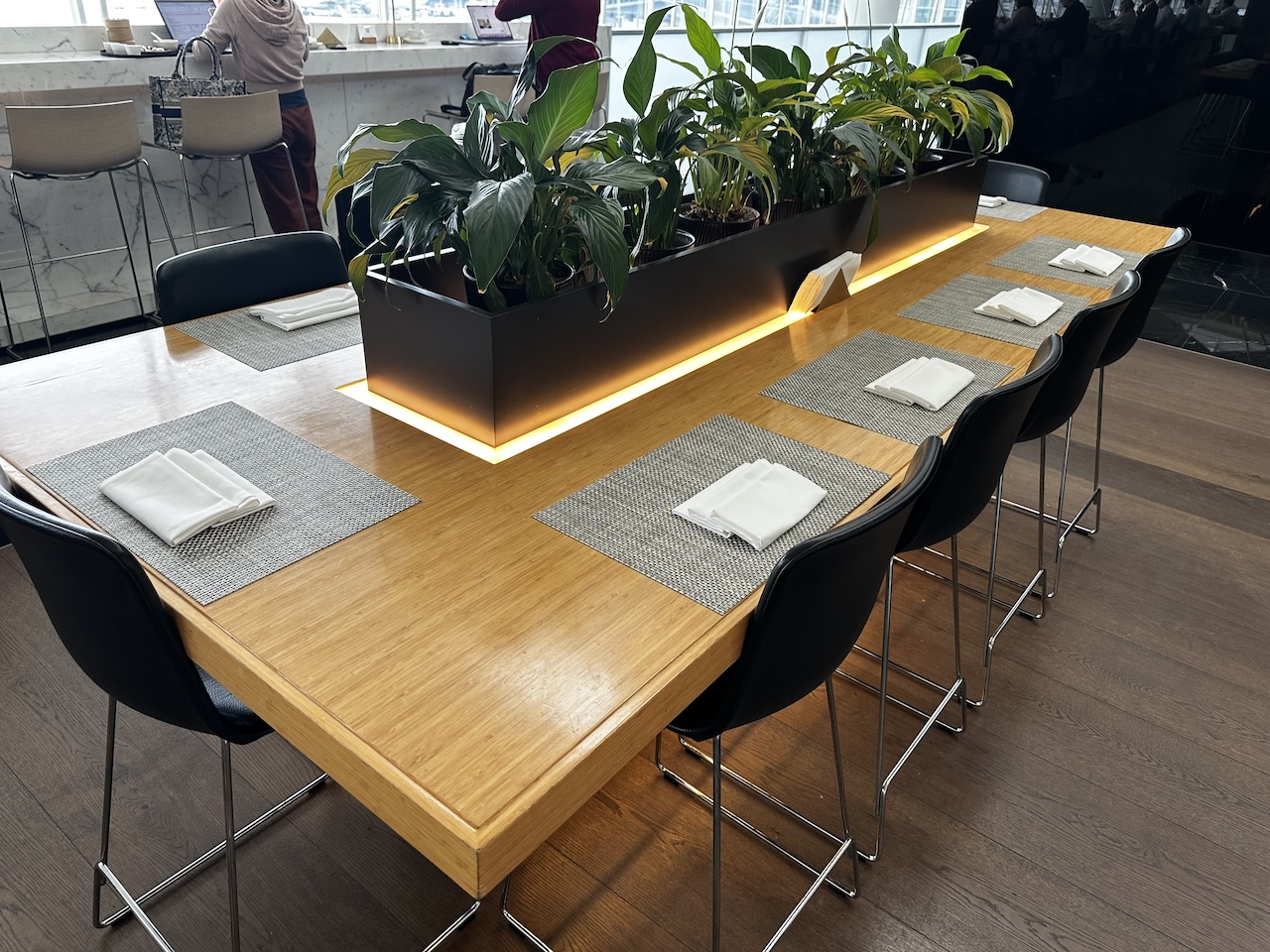 Bei dem Wing handelt es sich um eine riesige Lounge mit separatem First- und Business Class Bereich. Letzteren hat sich Alexander schon etwas genauer angesehen und hier darüber berichtet. Die Einrichtung befindet sich gleich nach den Sicherheitskontrollen, in der Nähe der Gates 1-4. The Wing ist täglich zwischen 5:30 und 0:30 Uhr geöffnet.