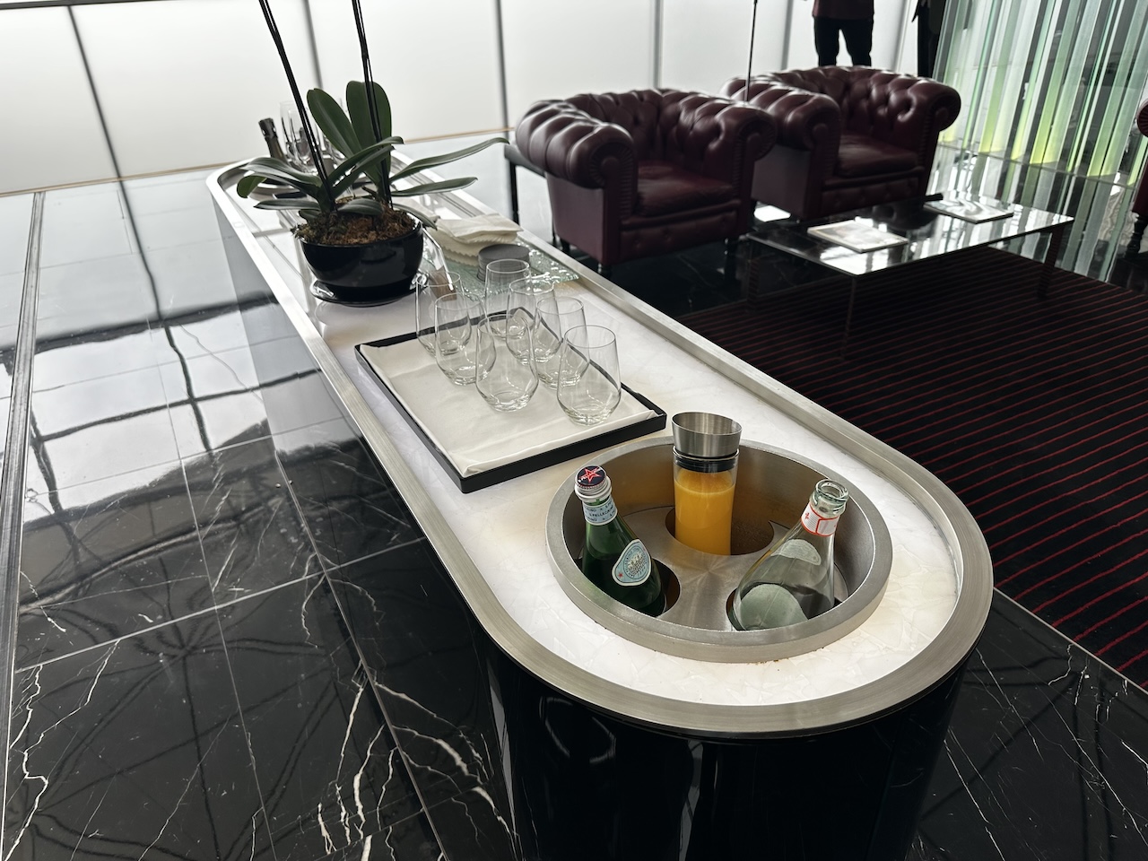 In der Lounge ist sehr viel Personal unterwegs wobei viele Mitarbeitende eher reserviert waren. Ausnahmen gab es auch, so hat ein Barkeeper die Begegnung zum Smalltalk genutzt und uns etwas zur großen Getränkekarte erzählt.