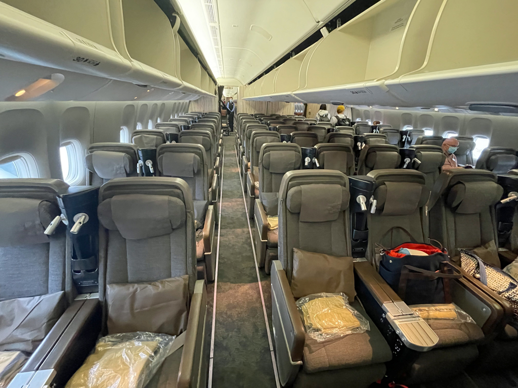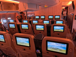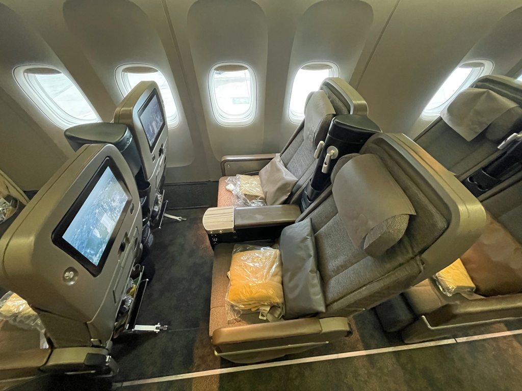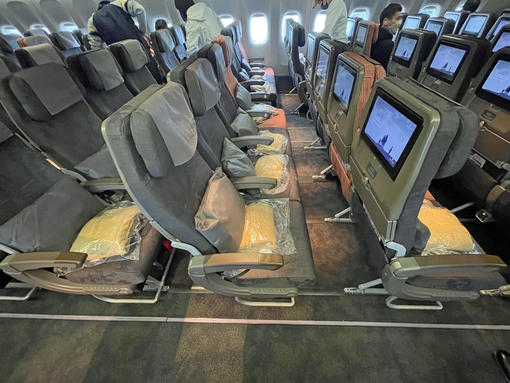 Die Economy Class wartet in der inzwischen typischen 3-4-3 Konfiguration auf, die sich leider in der Boeing 777 durchgesetzt hat. Der Sitzabstand beträgt 81 cm, was sich positiv bemerkbar macht.