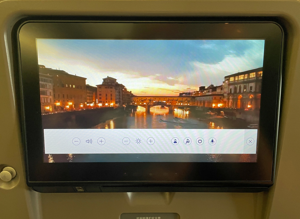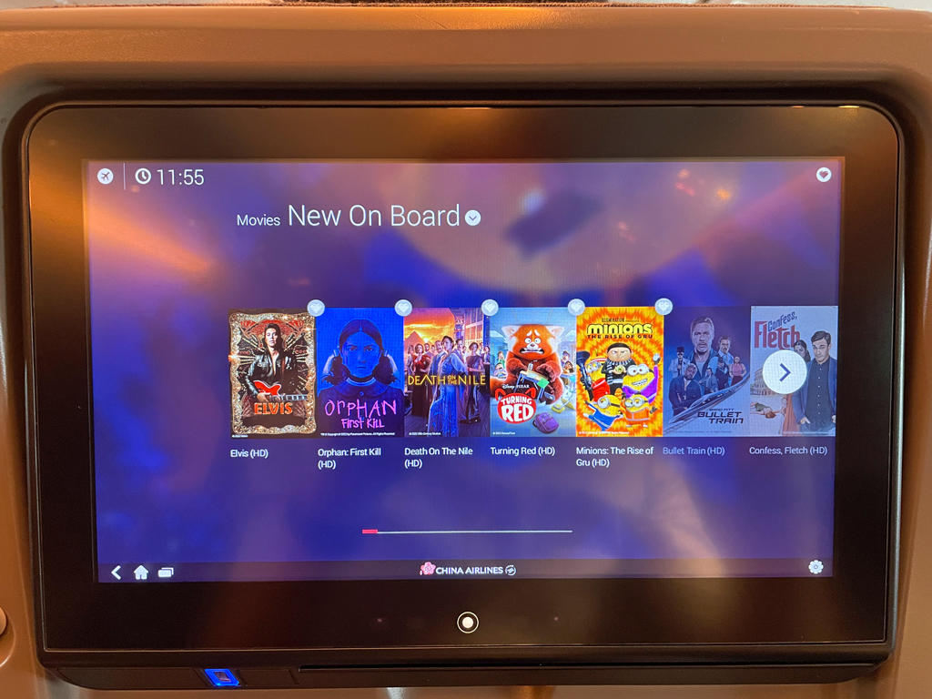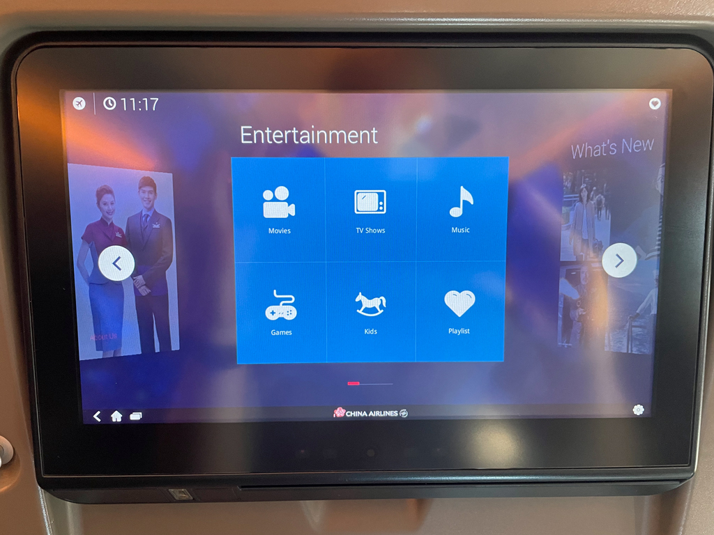 Die Monitore bei China Airlines sind angenehm groß und auch die Auflösung ist angenehm hoch. Leider spiegeln die Monitore, sodass das Ansehen von Filmen erst bei verdunkelter Kabine angenehm möglich ist.