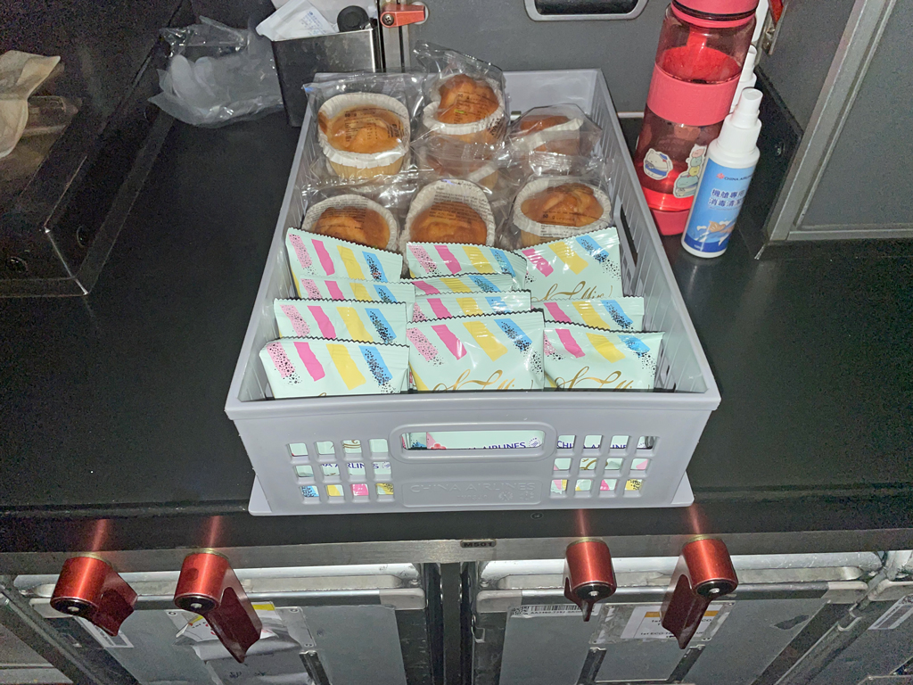 Während des Fluges standen in den Galleys Körbe mit Snacks bereit. Das waren Muffins oder verschiedene asiatische Gebäcksnacks, wie z.B. der bekannte Reisgebäckmix, den man auch in vielen Bars bekommt. An Getränken wurde einem alles gereicht, was es in der Economy Class auch zu den Mahlzeiten gibt. Wer wollte, konnte sich die Getränke auch an den Platz bringen lassen.