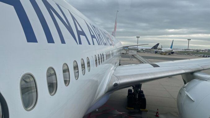 China Airlines Economy Class Boeing 777-300ER Frankfurt nach Taipei | Boarding