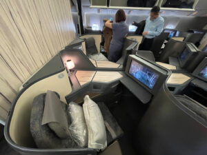 Der Online Check-In öffnete 48 Stunden vor Abflug. Dort konnte ich dann meinen vorab ausgewählten Sitzplatz bestätigen und die elektronische Bordkarte erhalten. Alternativ hätte ich auch bevorzugte Sitzplätze reservieren können. Für 40 Euro wäre es weiter nach vorne gegangen (in der Economy Class) und für 153 Euro für einen Platz am Notausgang.