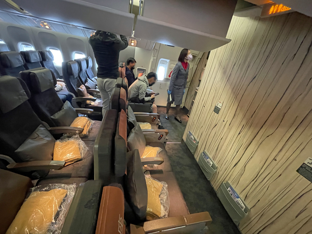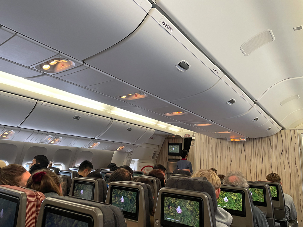 Beim Service war zunächst auffällig, wie strikt Coronaregeln angewendet wurden. Die Crew trug die ganze Zeit blaue Masken und blaue Handschuhe. Aber auch sonst war die Einhaltung von Regeln sehr wichtig, denn vor dem Start ließ sich die Crew die elektronischen Geräte zeigen um zu prüfen, ob sich diese auch im Flugmodus befinden. Außerdem wurde penibel kontrolliert, ob die Passagiere alle ihren auf dem Ticket zugewiesenen Platz eingenommen haben. Dazu ging die Crew mit Papierlisten durch die Kabine und setzte – wenn nötig – Passagiere wieder um.