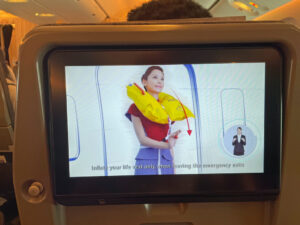 Kurz nach dem Boarding wurden gratis Kopfhörer verteilt. Erst ca. 10 Minuten später wurde das Entertainmentsystem gestartet. Dann dauerte es noch eine Viertelstunde bis zum Pushback, da die Beladung des Flugzeugs noch nicht abgeschlossen war.