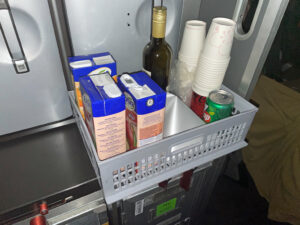 Ungefähr 40 Minuten nach dem Start hatte ich das Essen bereits vor mir auf dem Tablett. Der Getränkewagen folgte direkt. Dort gab es verschiedene Softdrinks, Säfte, Wasser sowie Bier und Wein. Sekt oder Spirituosen werden in der Economy Class nicht ausgeschenkt.