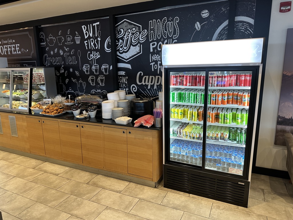 Das Angebot an Softdrinks sowie Heißgetränken, unter anderem vom Kaffeevollautomaten, war hingegen sehr groß.