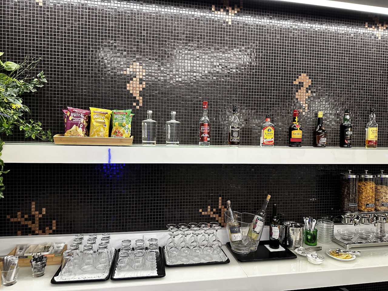 Mit 40 Euro kann man bestimmt auch in den Cafes und Bars im Terminal etwas anfangen. Wer aber gerne viel Alkohol trinkt und mit den Snacks fein ist, findet hier eine „Grundausstattung“. Nur wegen der Lounge würde ich aber nicht extra früher anreisen, für einen Kaffee & Gebäck war es aber okay.