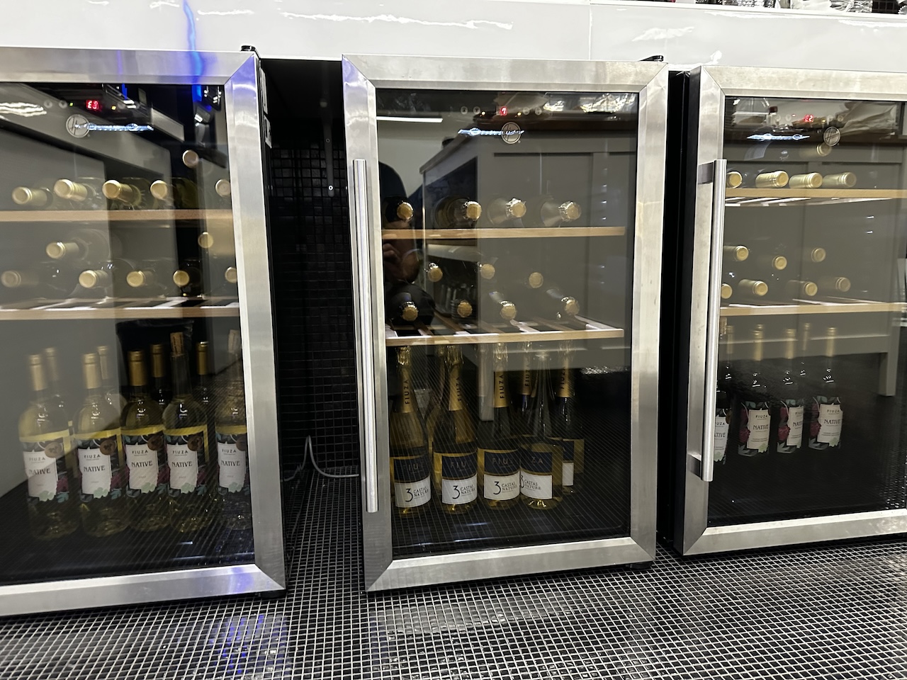 In den Kühlschränken stehen diverse Biersorten, Sekt und Wein. Auf einem Regal waren auch Spirituosen und Portwein.