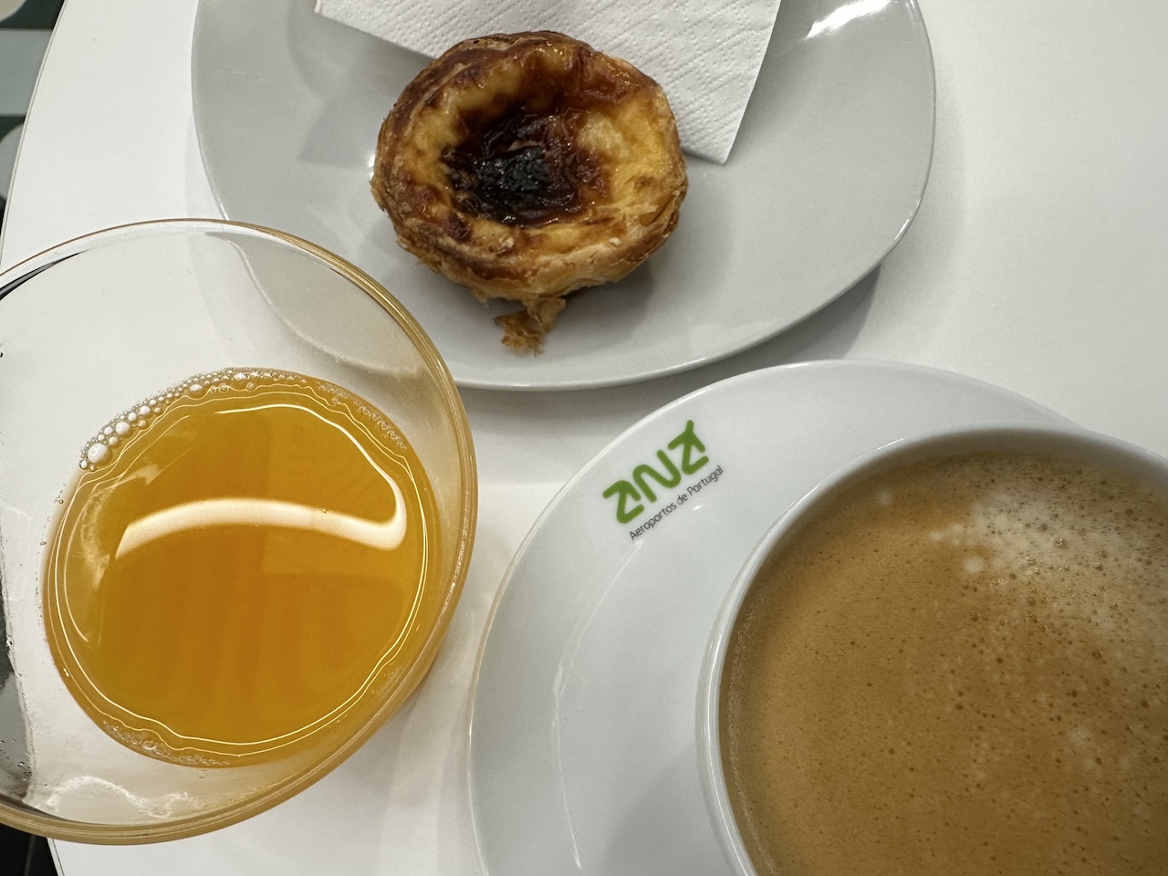 Ich habe es mir bei einem Pastel de Nata gemütlich gemacht, auch der Kaffee war auch ganz in Ordnung. Die Mitarbeiterin rief auch einmal kurz durch dass sich der TAP Flug verspätet und machte unmissverständlich klar, dass sie hierfür nicht zuständig ist.
